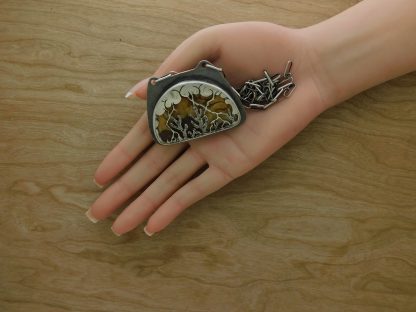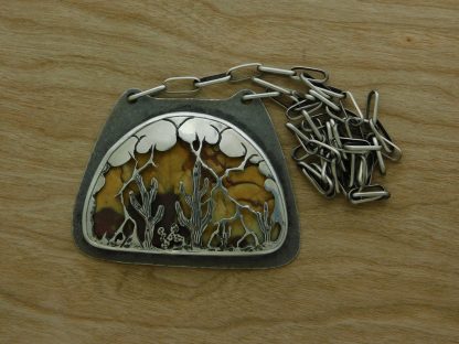 - Fabulous one-of-a-kind diorama 3 dimensional desert necklace by Ute/Acoma Silversmith Adam Ramirez.
