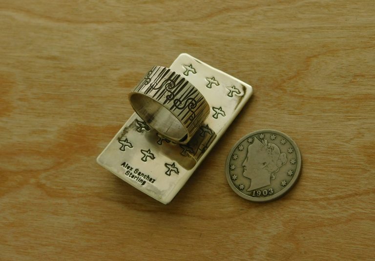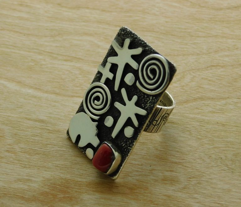 - Beautiful Alex Sanchez Mediterranean Coral and Sterling Silver Petroglyph ring.