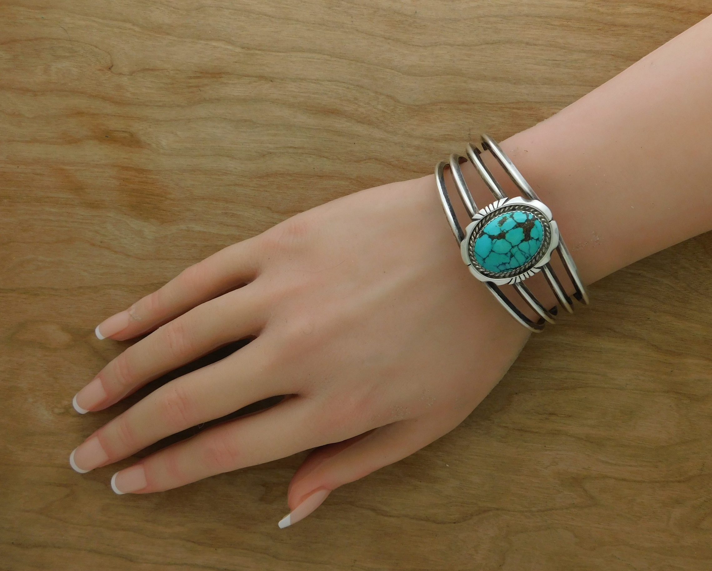 - Fabulous Egyptian Turquoise and Sterling Silver Navajo Bracelet.Β