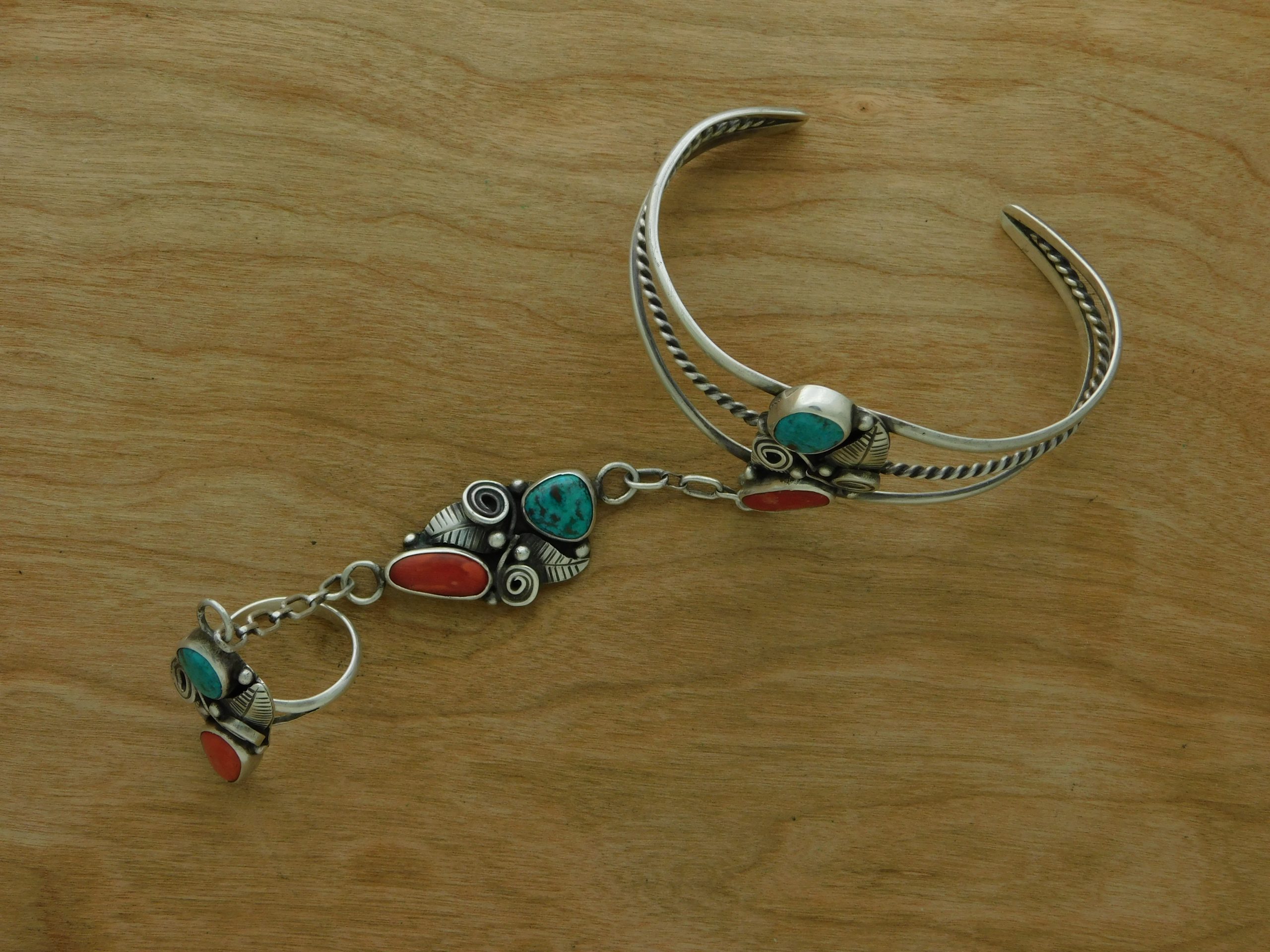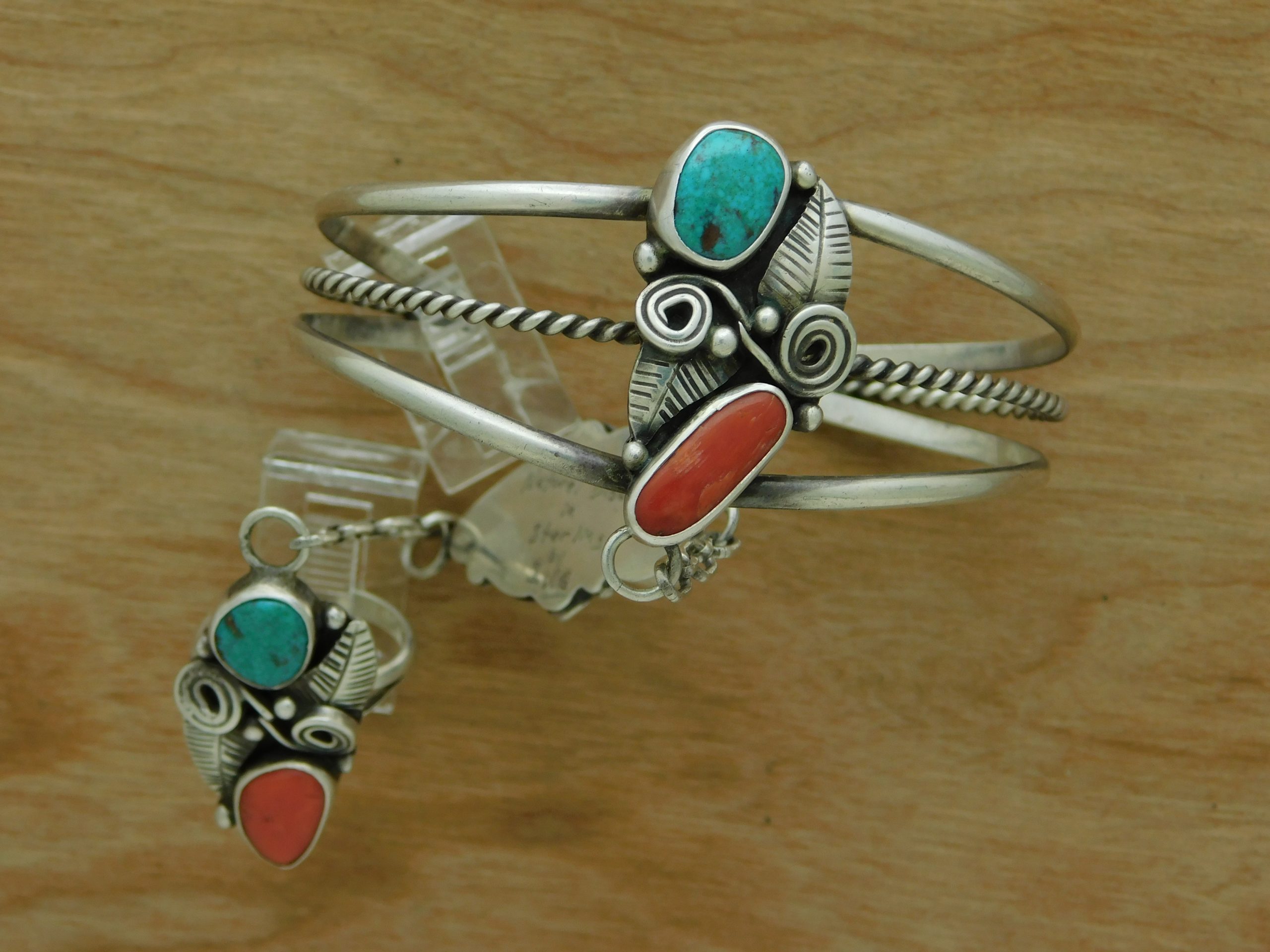 - Rare Bisbee Turquoise and Red Mediterranean Coral Slave Bracelet by SVG.