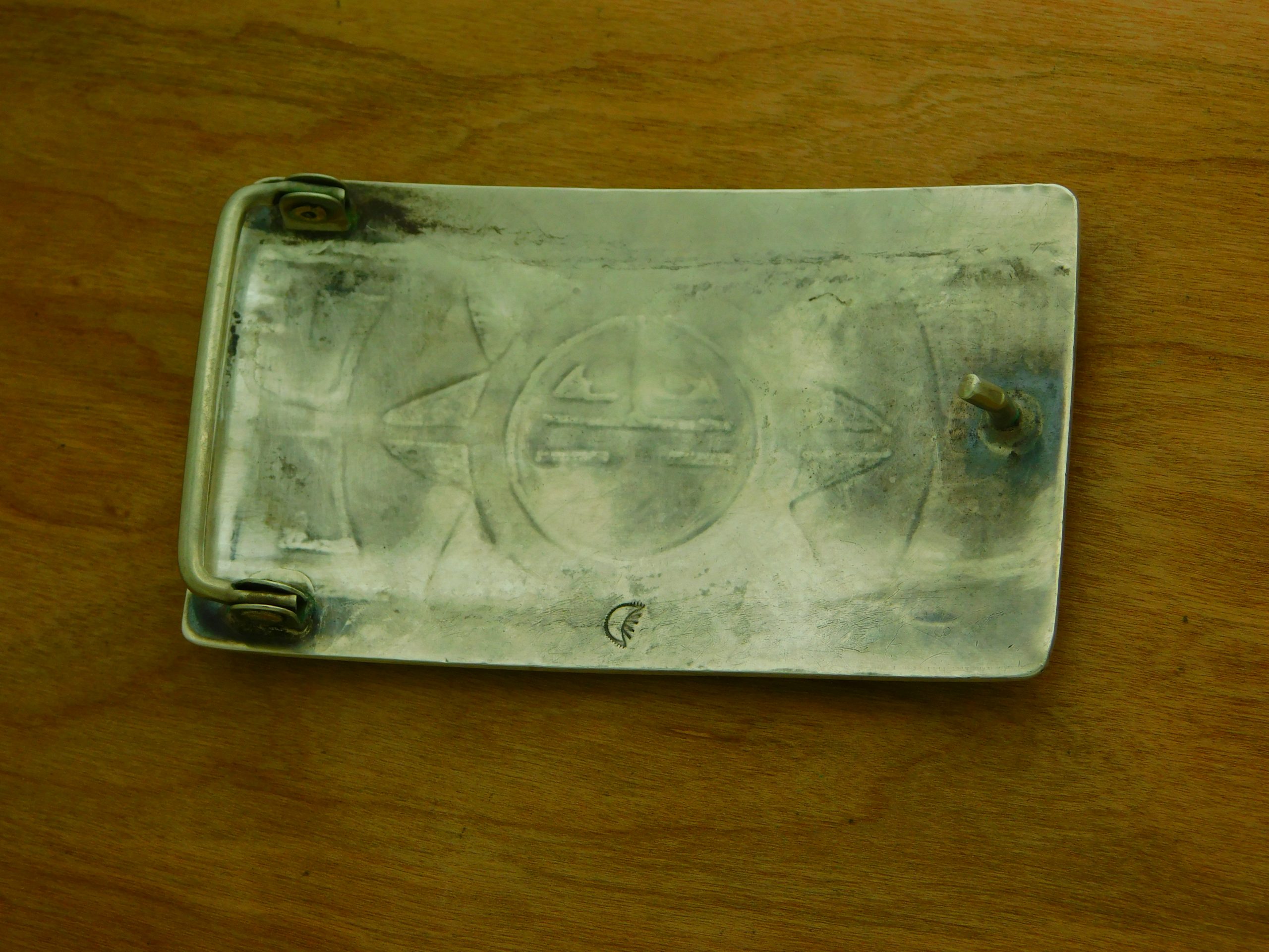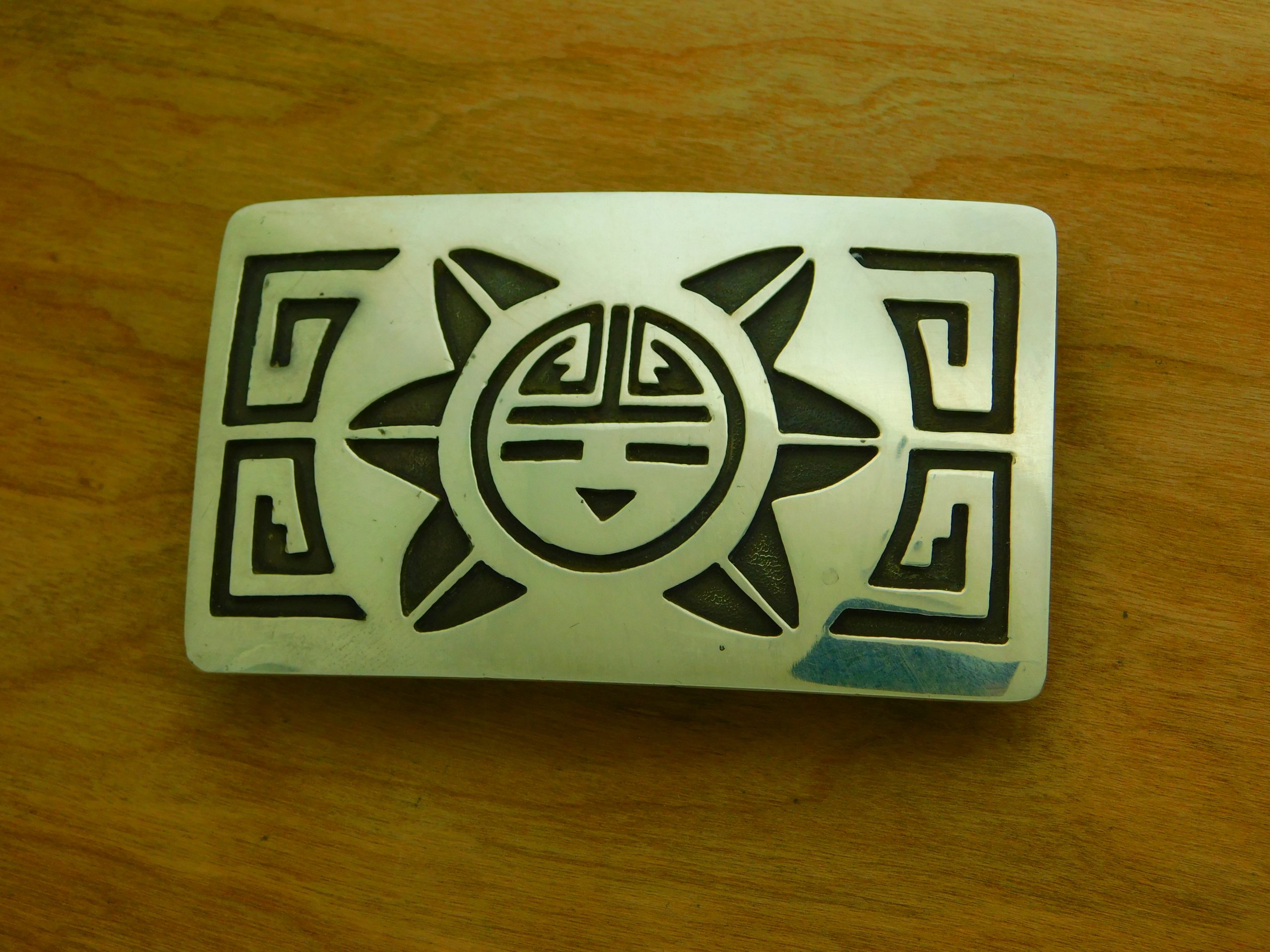 - Fabulous Chuck Linsay sterling silver belt buckle with SunfaceΒ center.
