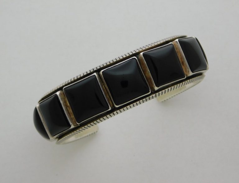 • Vintage Navajo sterling silver and black onyx bracelet hallmarked by Herbert Cayatineto