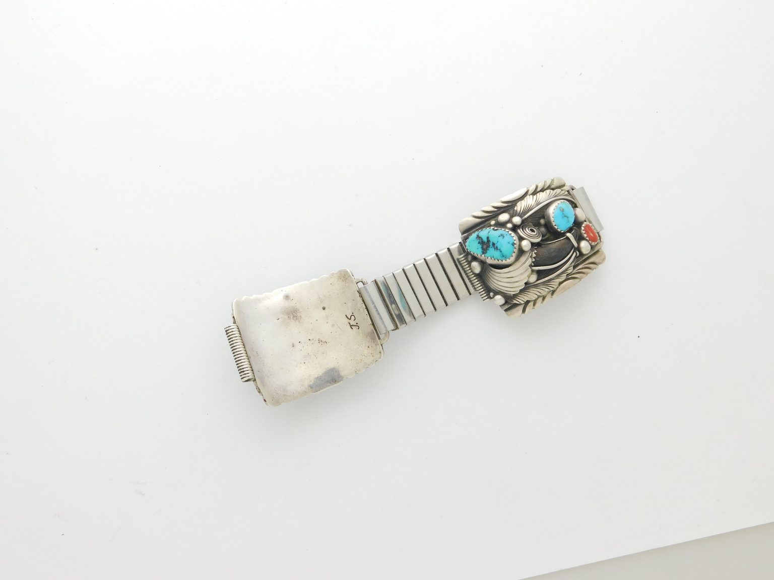 - Fabulous Jackie Singer Navajo Bear Claw Watchband with coral and turquoise accents