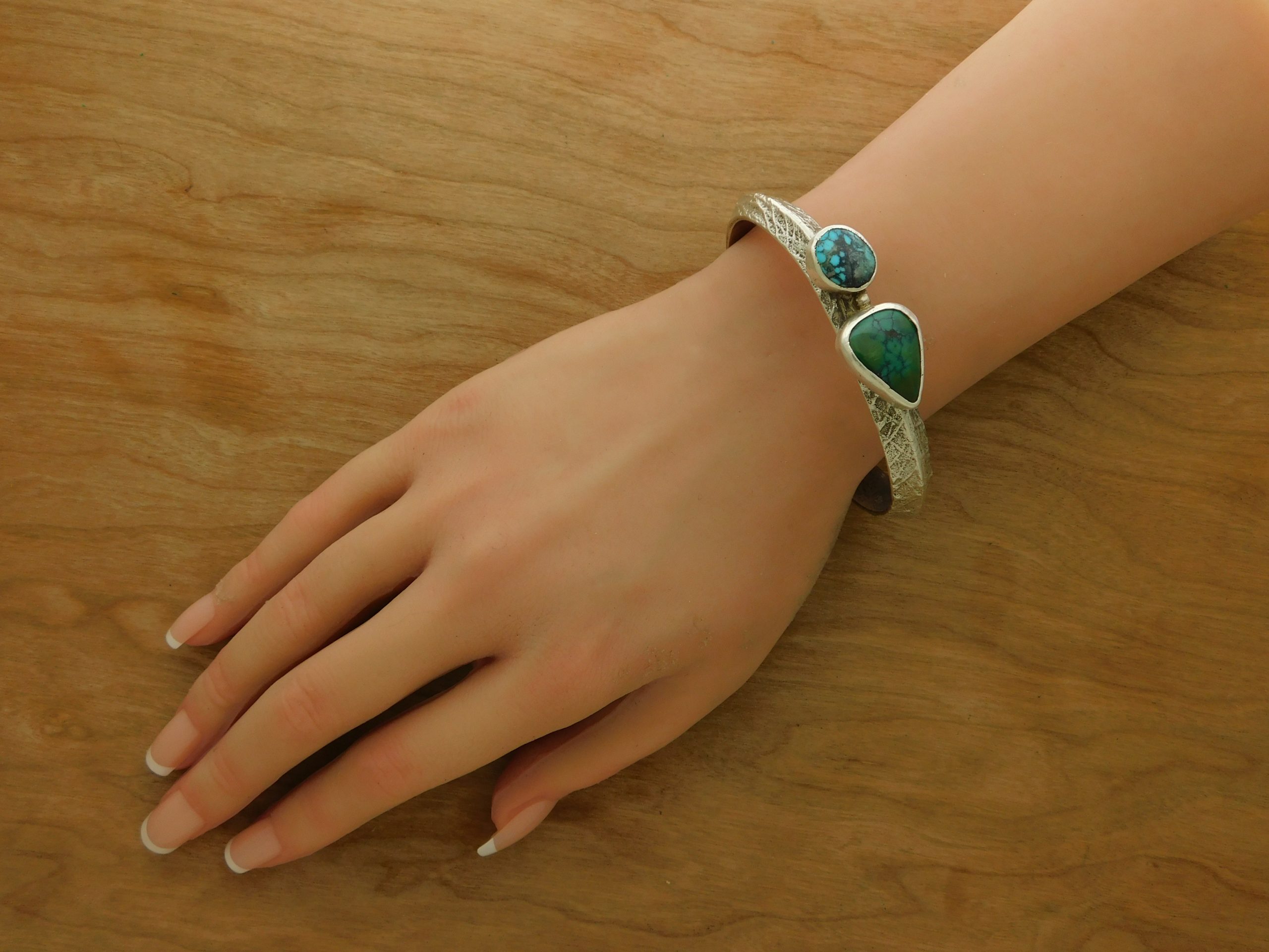 - Fabulous tufa cast and two turquoise stone tufa cast cuff by James Fendenheim, Tohono Oβodham silversmith.Β