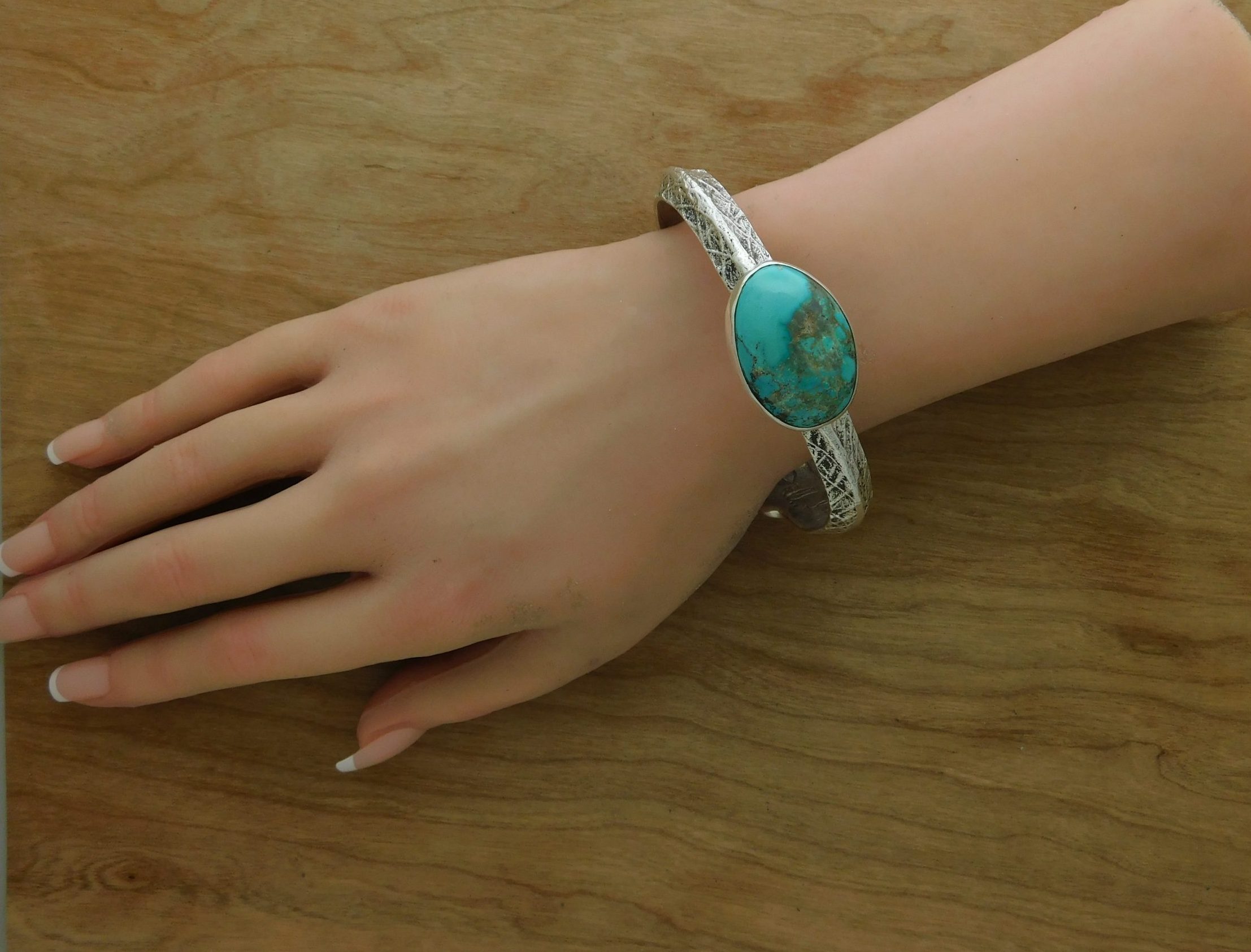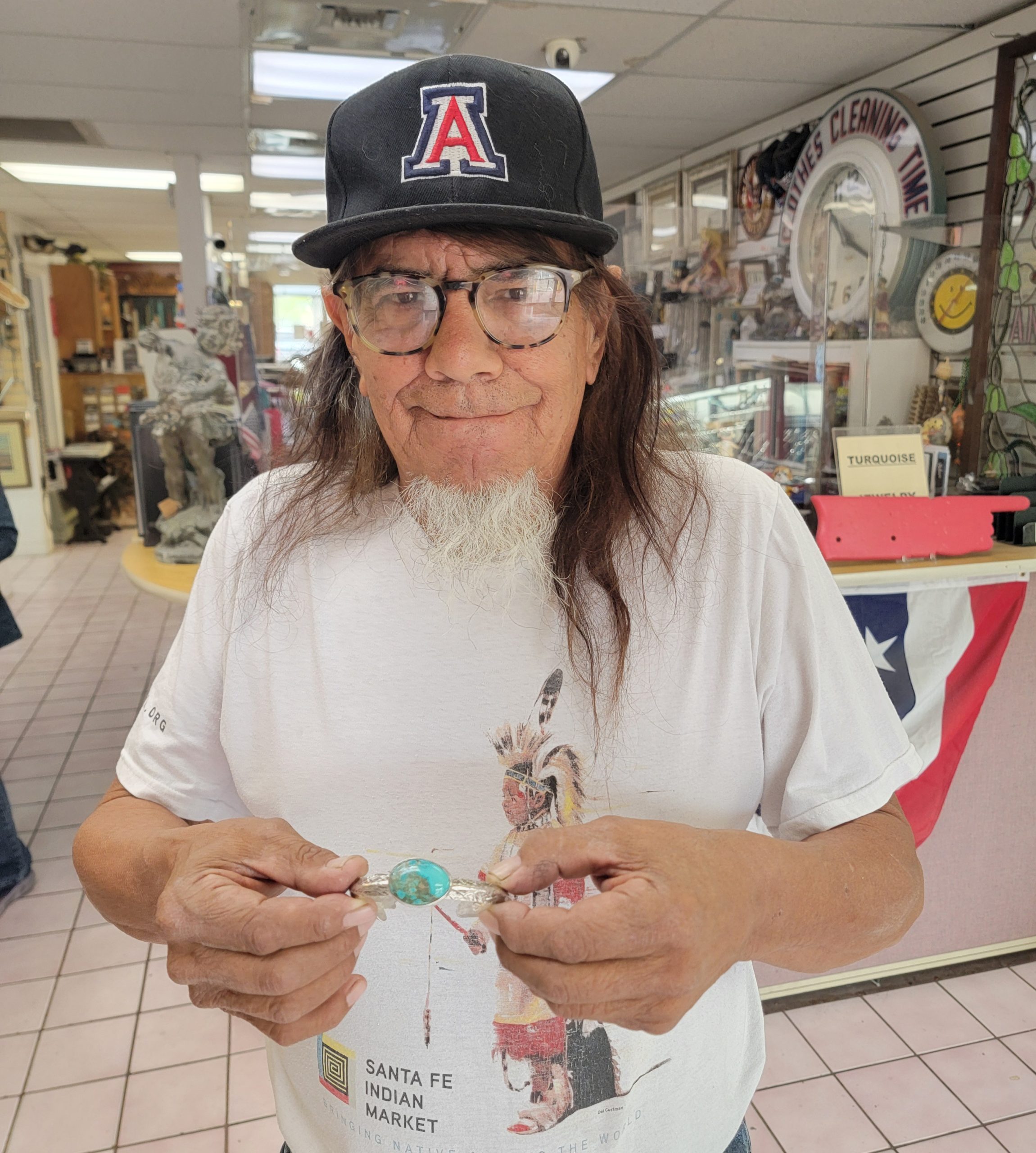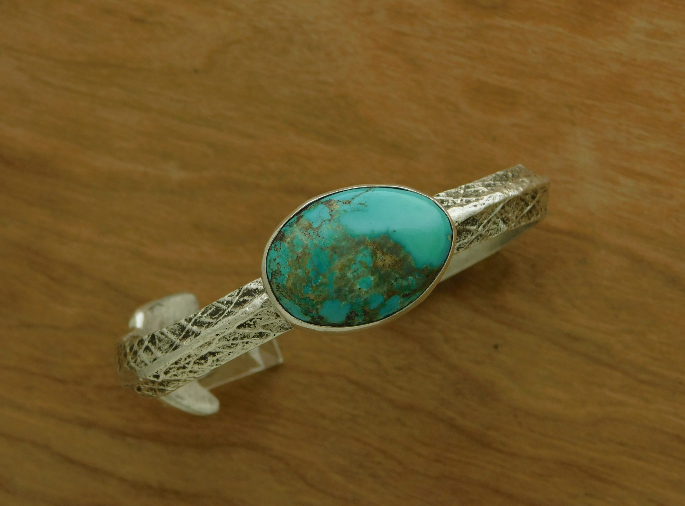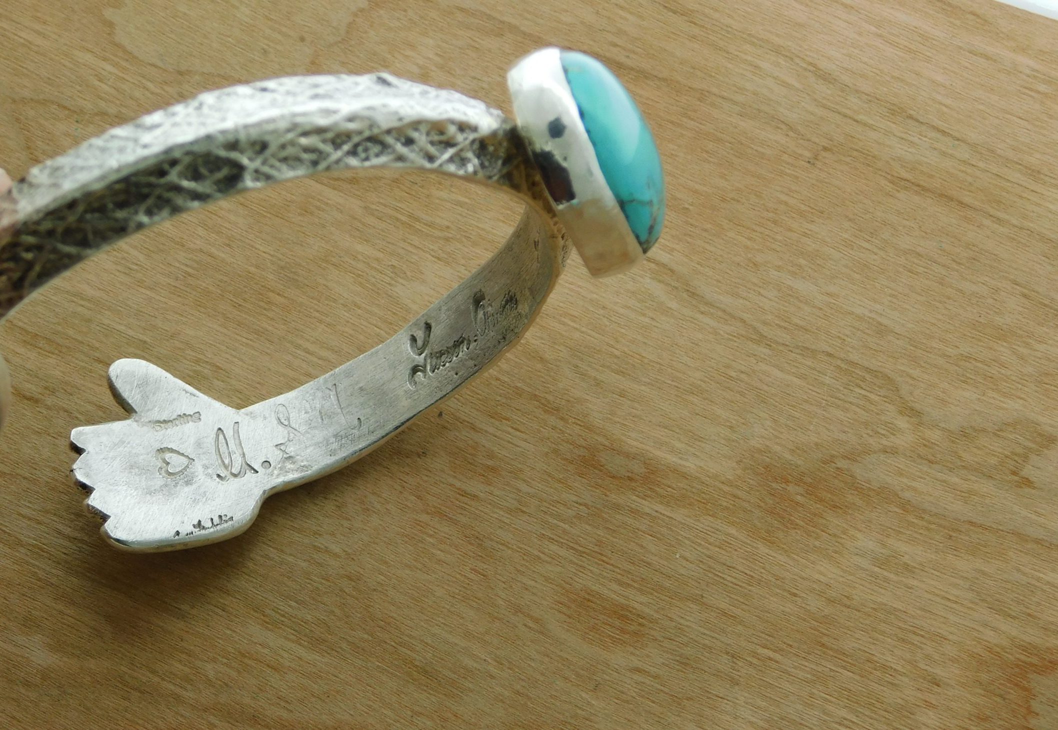 - Fabulous tufa cast and turquoise stone tufa cast cuff by James Fendenheim, Tohono O’odham silversmith.