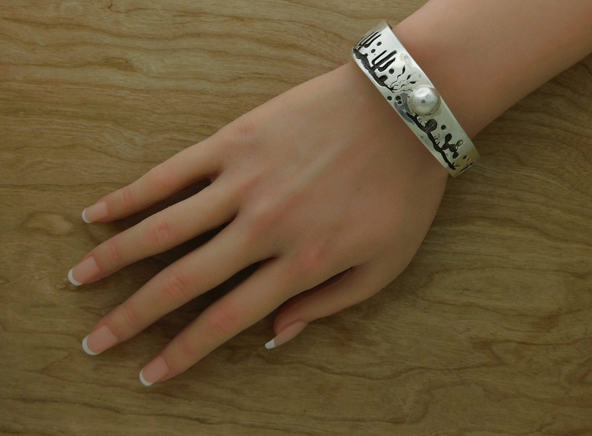 - This beautiful bracelet features the sun, Saguaro Cactus, Prickly Pear Cactus, Barrel Cactus, Agave, and Turtles (for longevity) This bracelet is a one-of-a-kind and is a hand cut pattern.