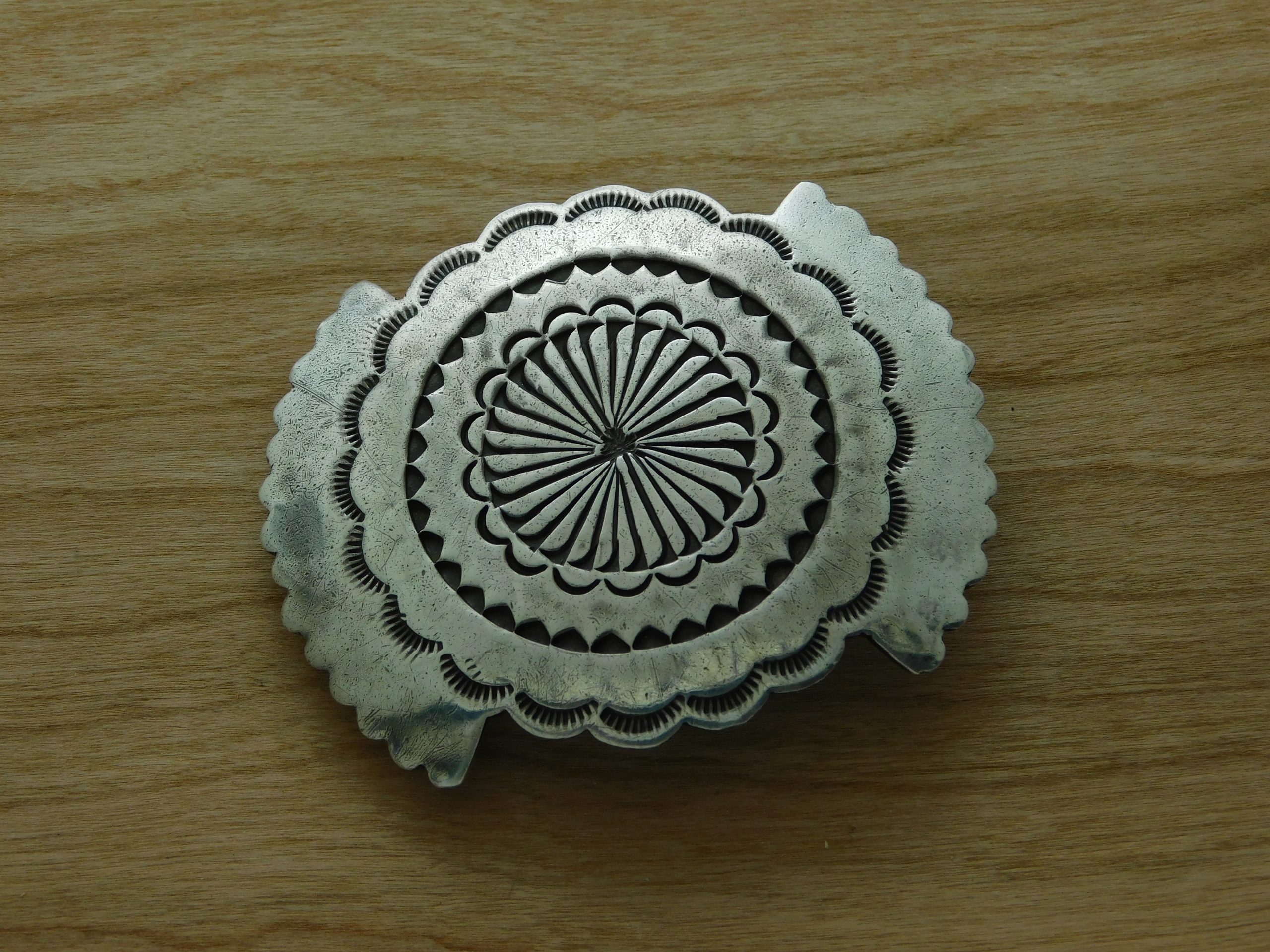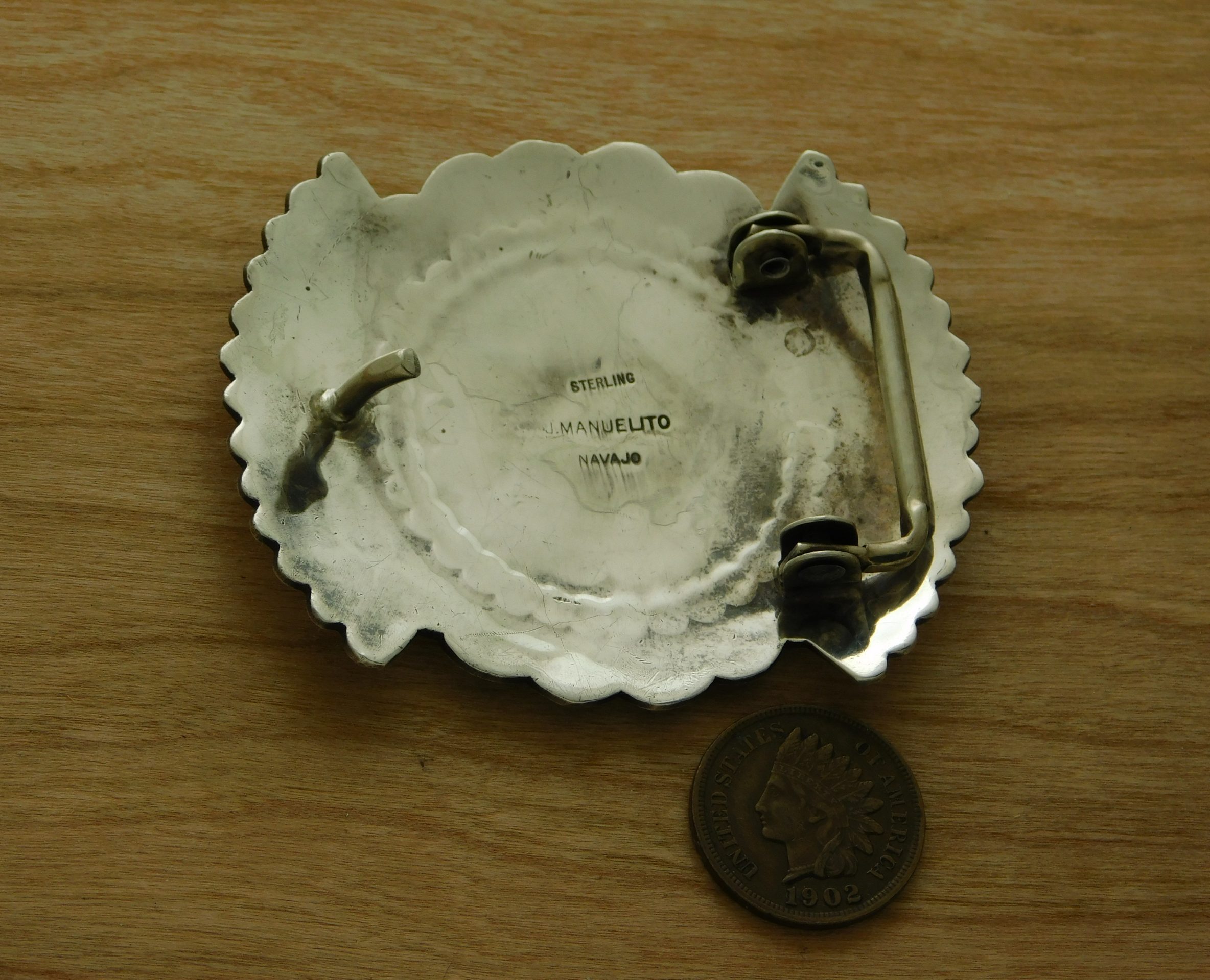 - Fabulous Johnny Manuelito sterling silver Concho style belt buckle.