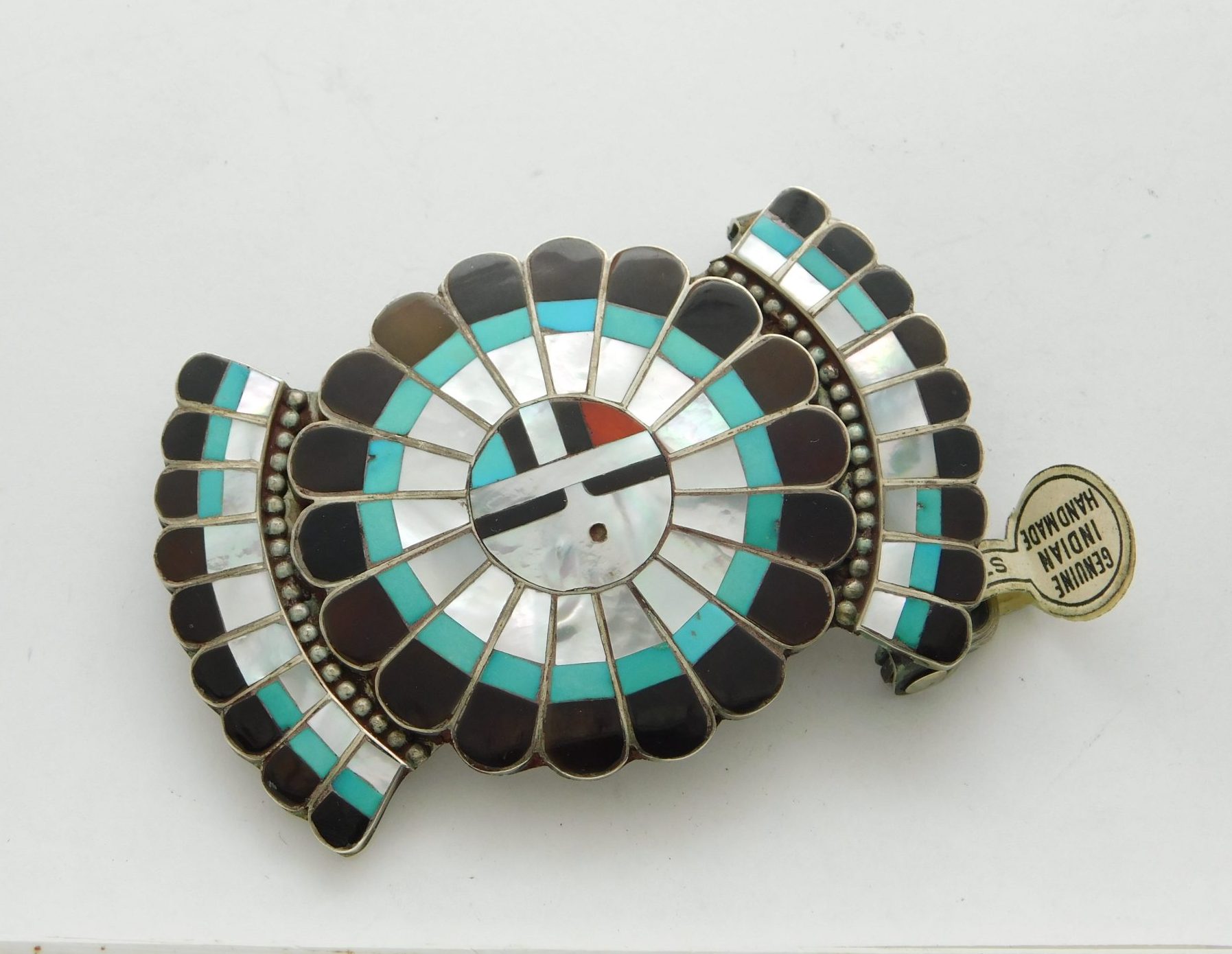 - Beautiful belt buckle by Jose and Dora Massie, Zuni Pueblo.