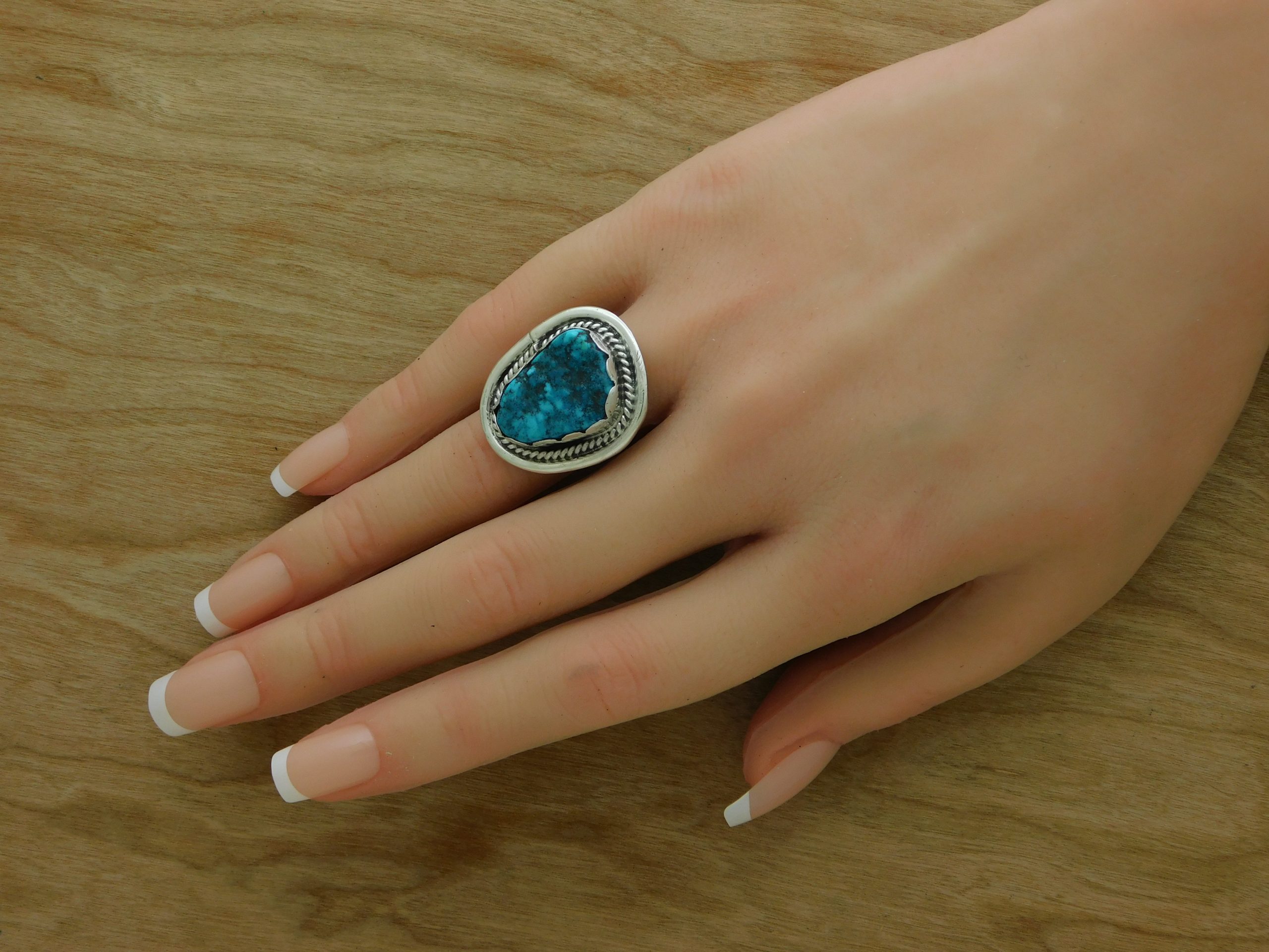 - Beautiful Julian Yazzie Navajo Blue Kingman Turquoise and Sterling Silver ring.