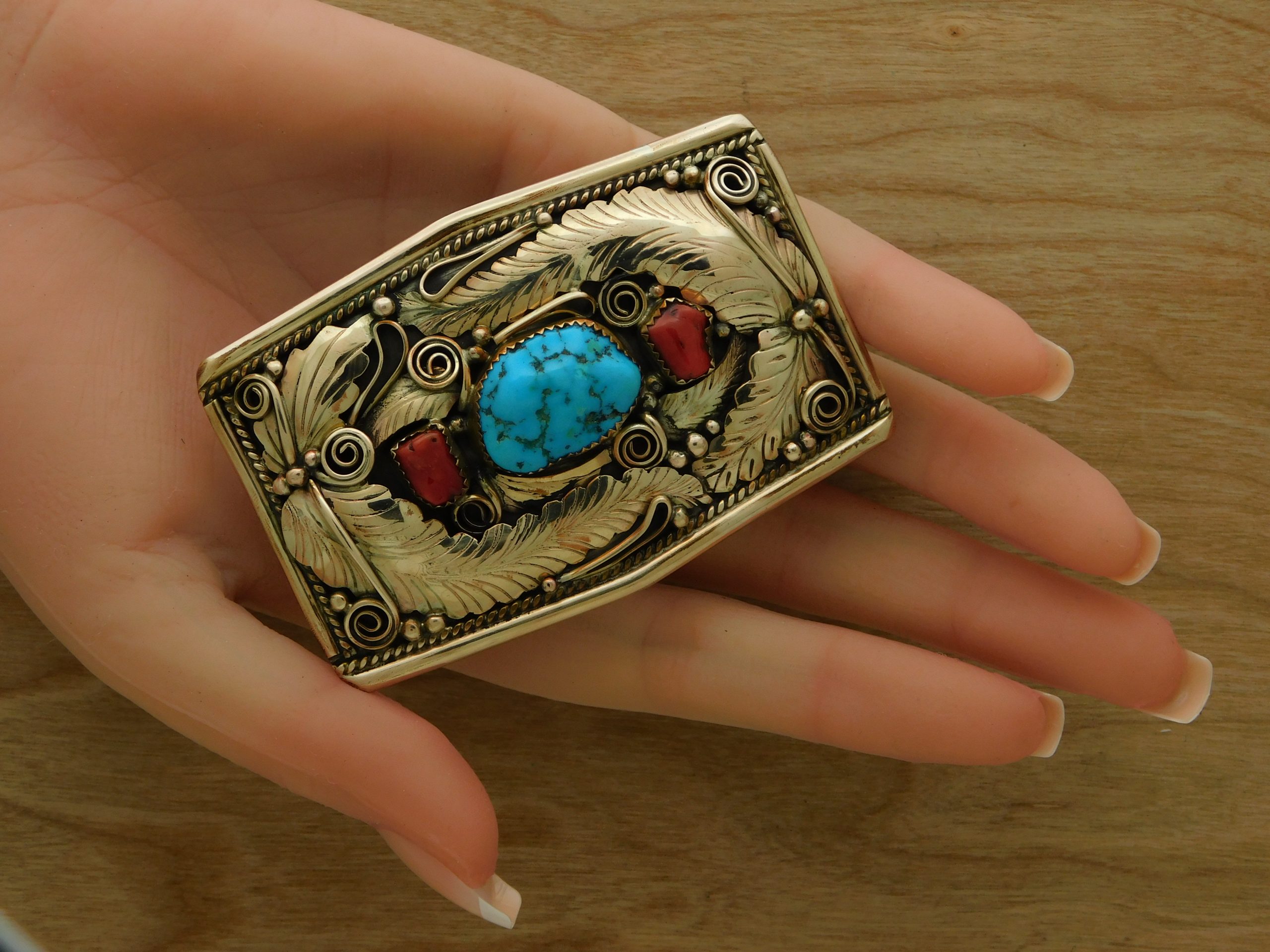 - Fabulous Justin Morris Sterling Silver and unusual yellow Gold Filled foliate design belt buckle!