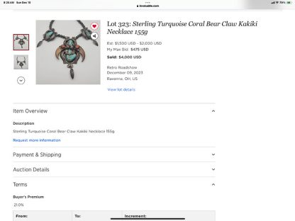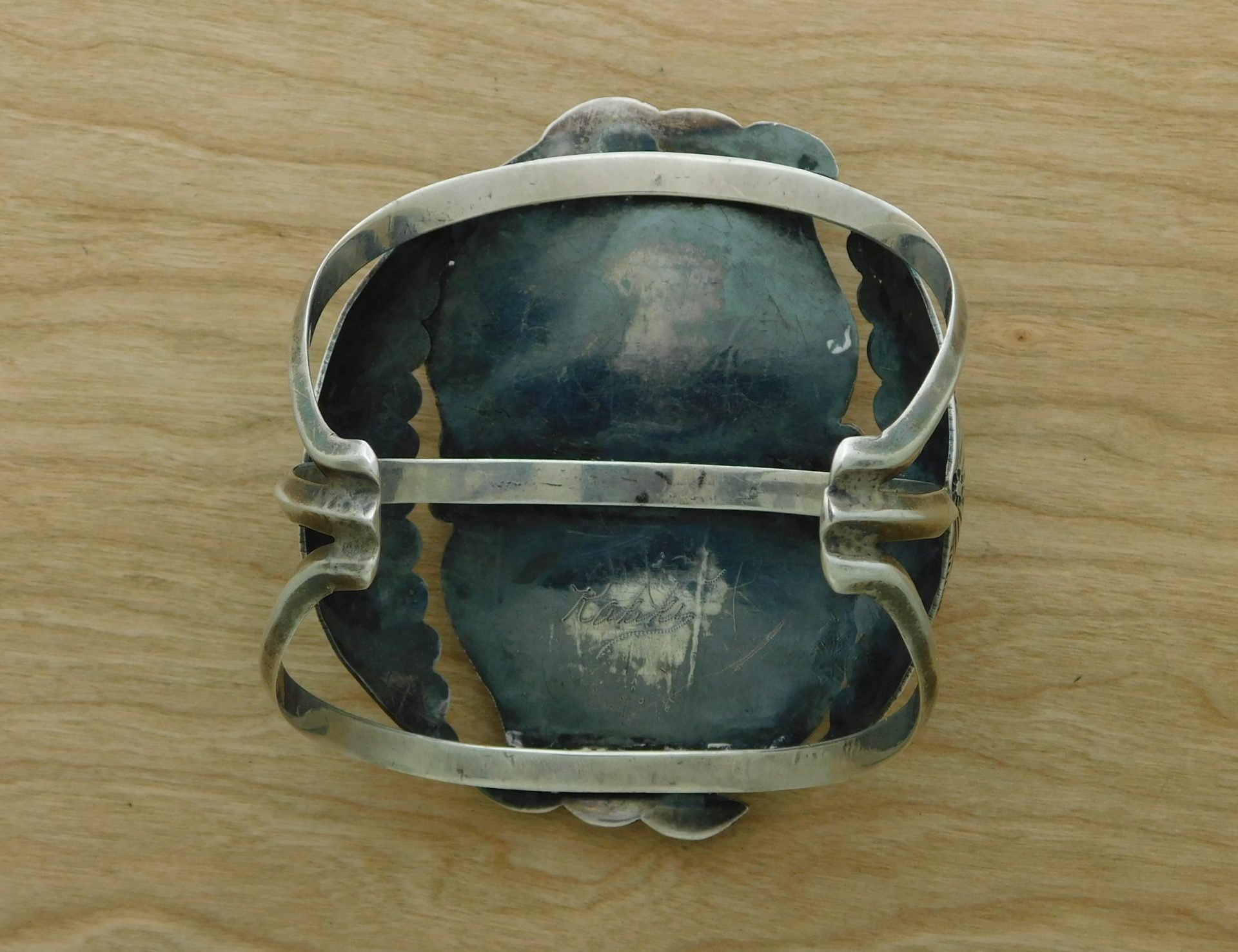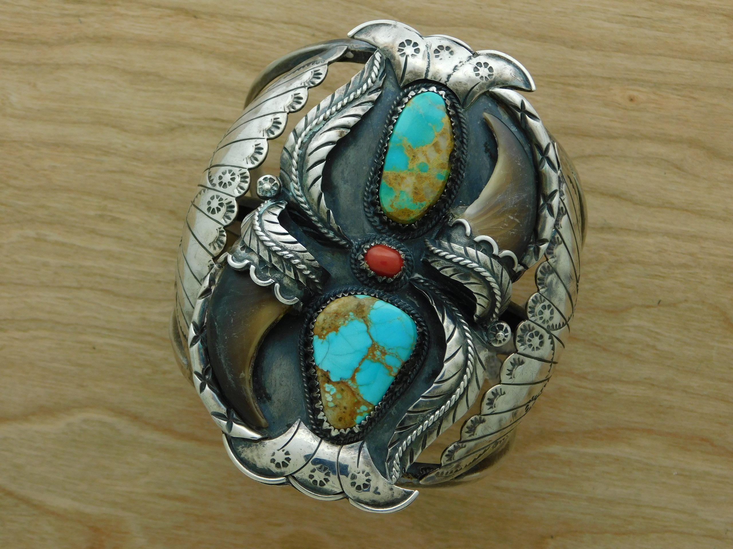 - This Turquoise, Mediterranean Coral, and Bear Claw cuff was created at the Casa Kakiki workshop in El Paso, Texas.