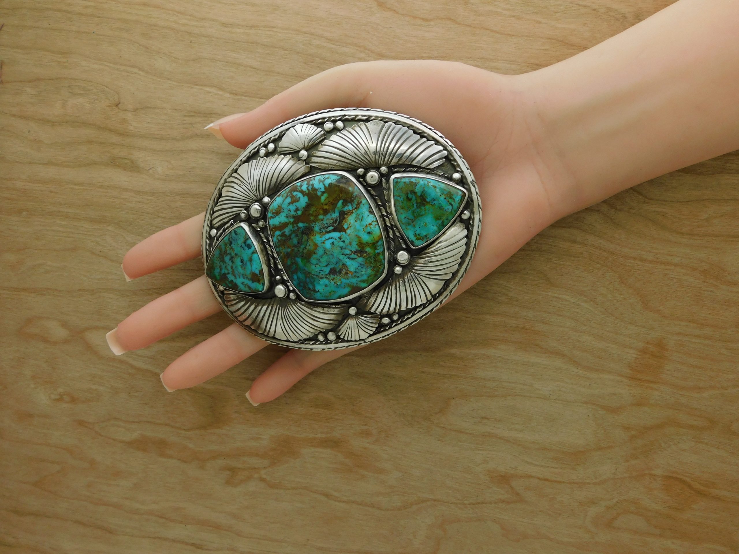 - Monumental Leroy Dayea Navajo Sterling Silver and Turquoise Mountain Turquoise belt buckle!