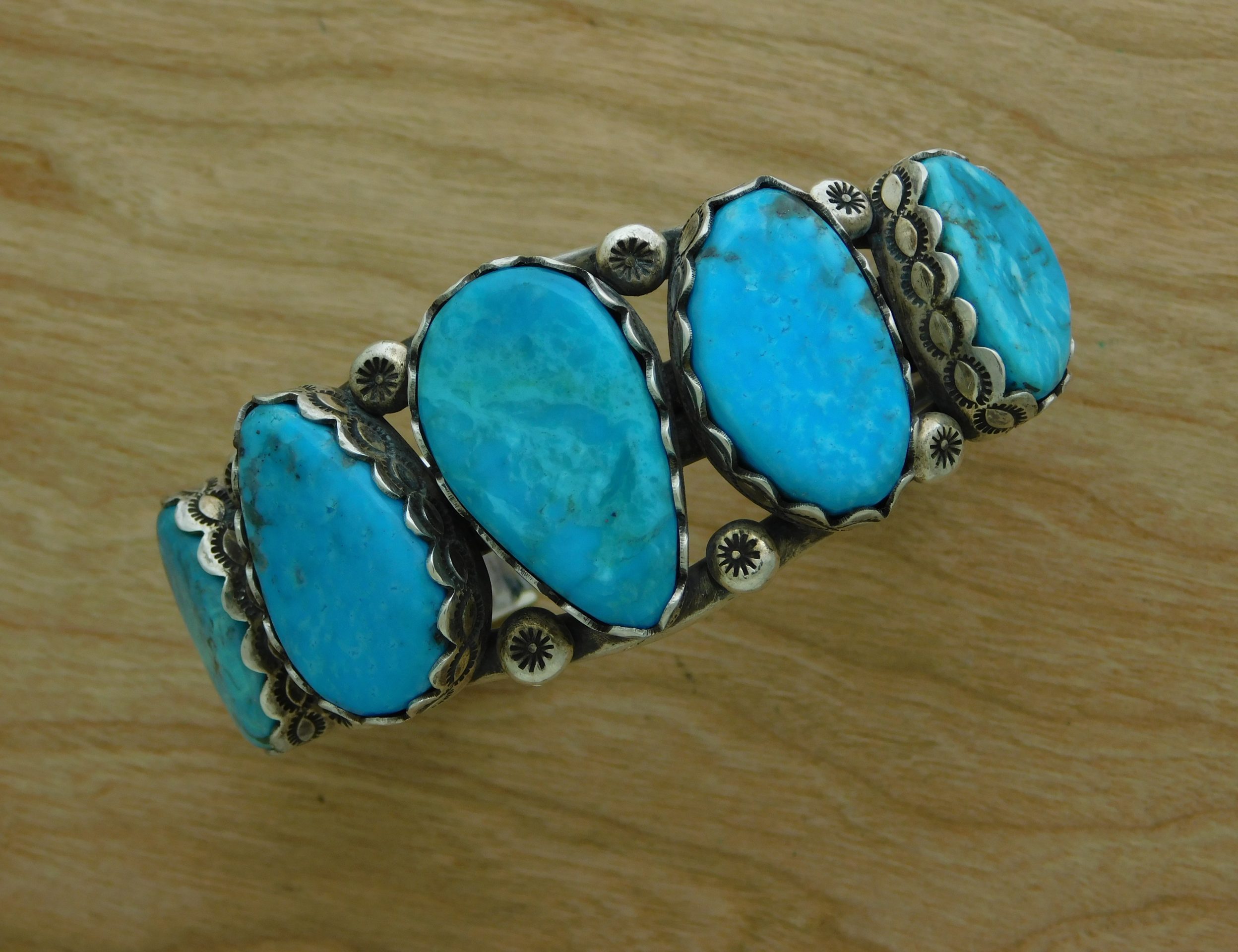 - Fabulous Lester Jackson Navajo Sterling Silver and Kingman Turquoise Cuff Bracelet