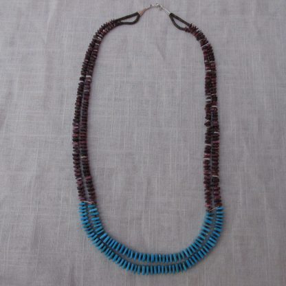 - Beautiful Louise Shabi-Ashkie Navajo Necklace with Kingman Turquoise and Spiny Oyster.