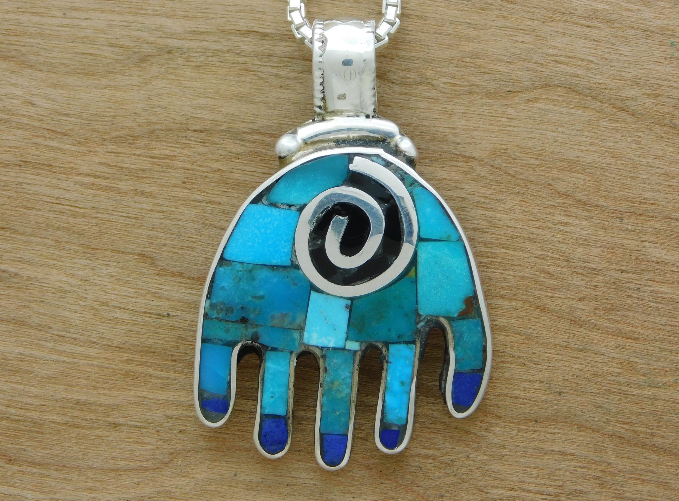 - ONE-OF-A-KIND Osavio Crespin Santo Domingo Turquoise and Lapis Sterling Silver Pendant!