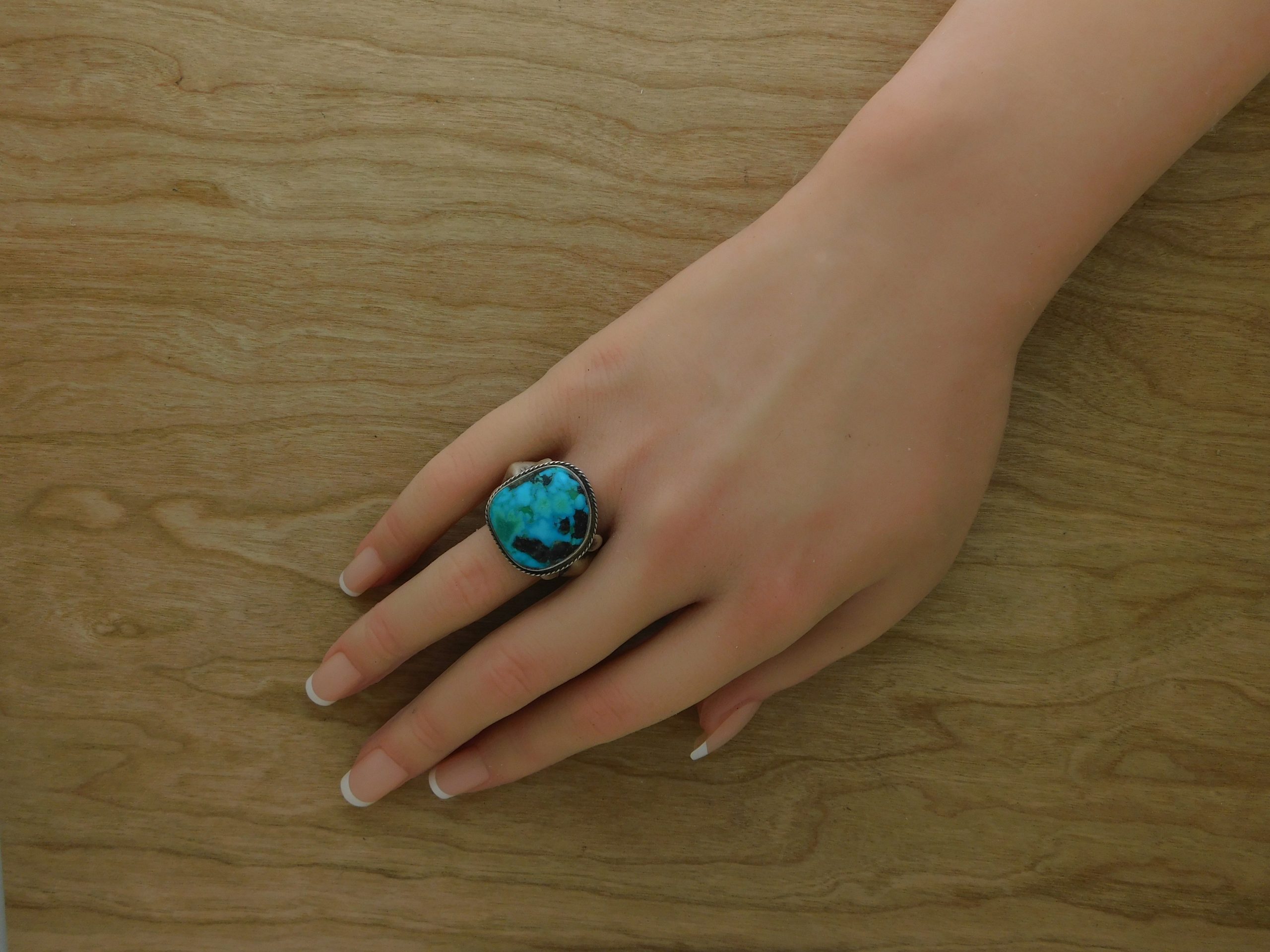 - Blue Diamond Turquoise RDY signed Navajo Sterling Silver Ring.