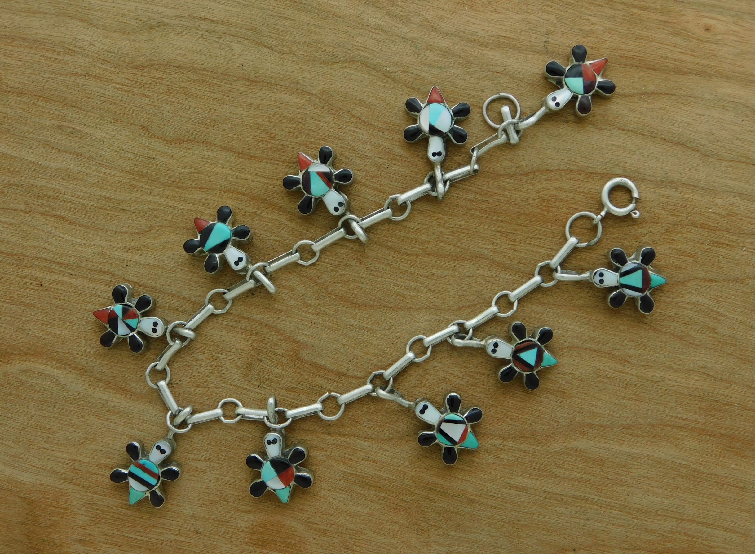 - This is a fabulous 10 different pattern semi-precious stone inlay turtle Zuni Bracelet
