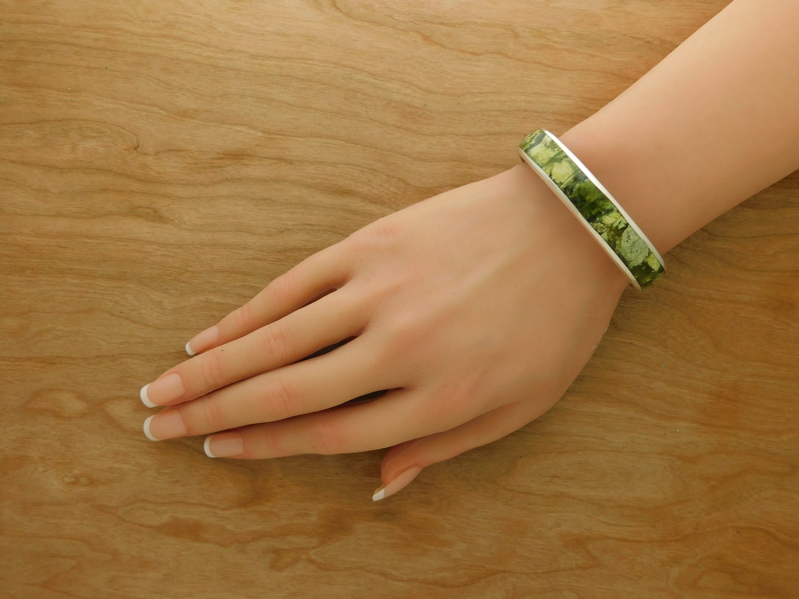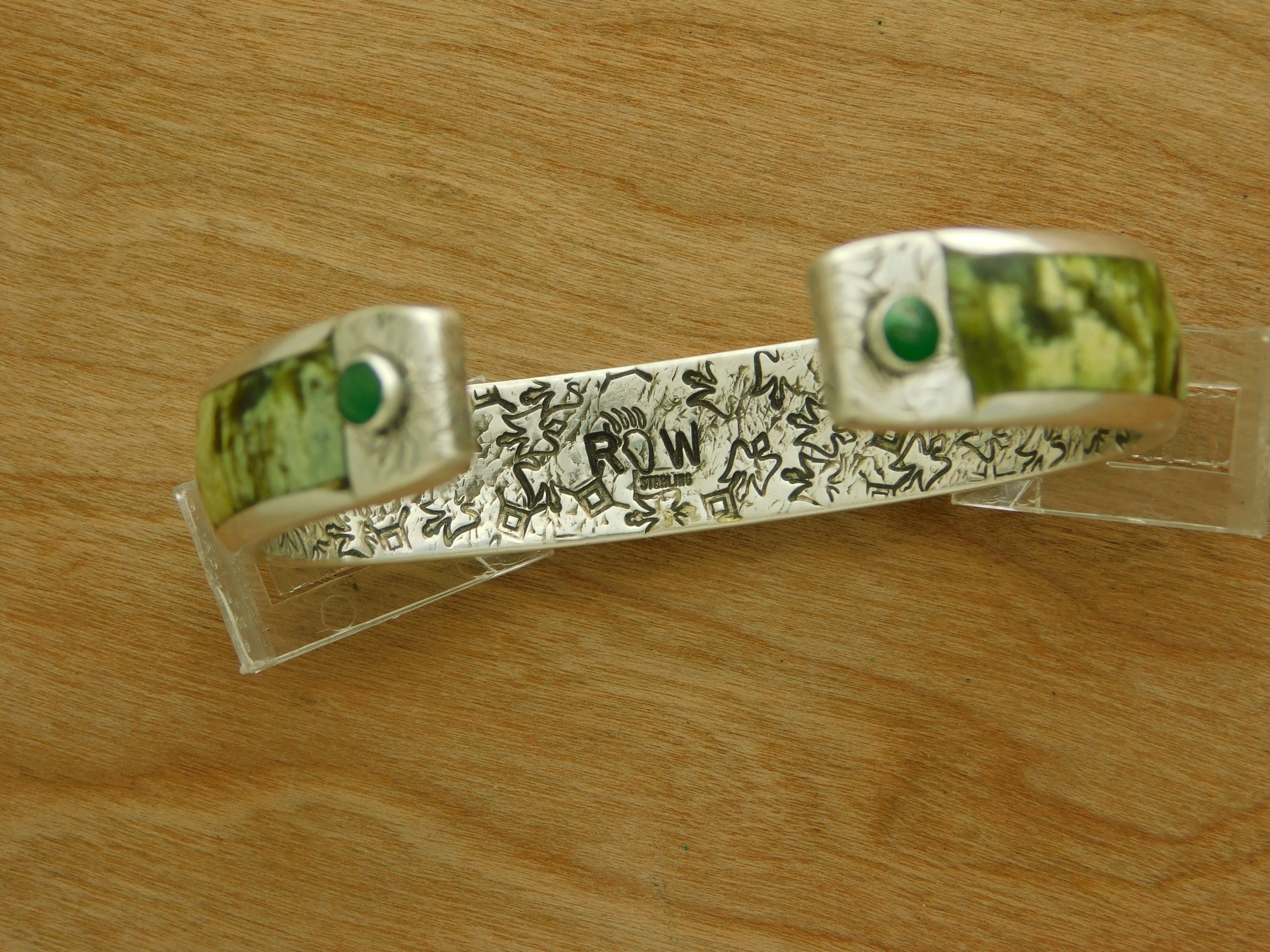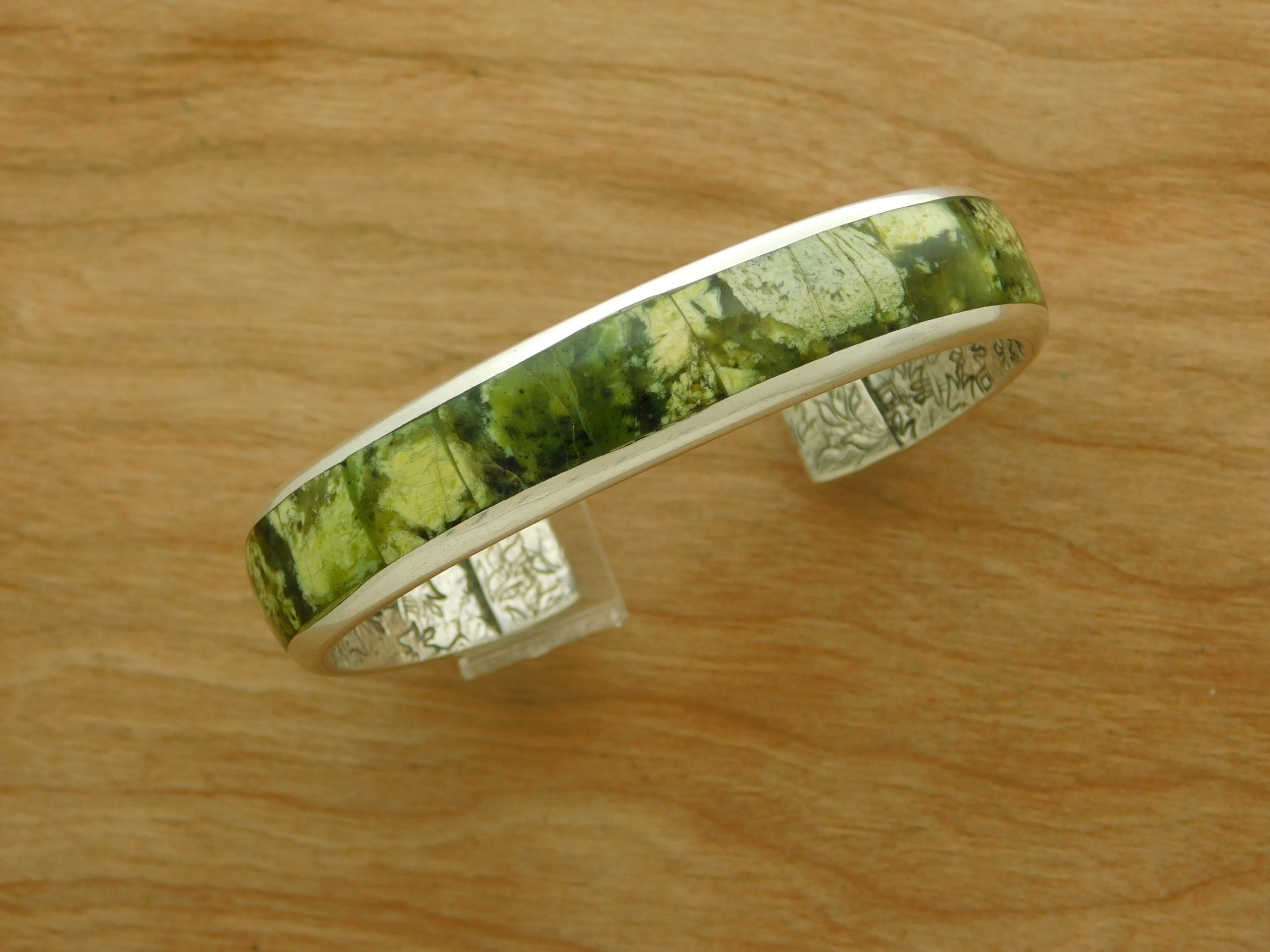 - Fabulous RW Navajo Yellow Serpentine Inlaid in Sterling Silver Cuff Bracelet