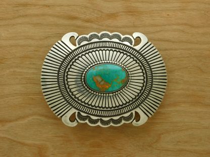 • Exceptional Sammie Kescoli Begay Sterling Silver Belt Buckle with Royston Turquoise