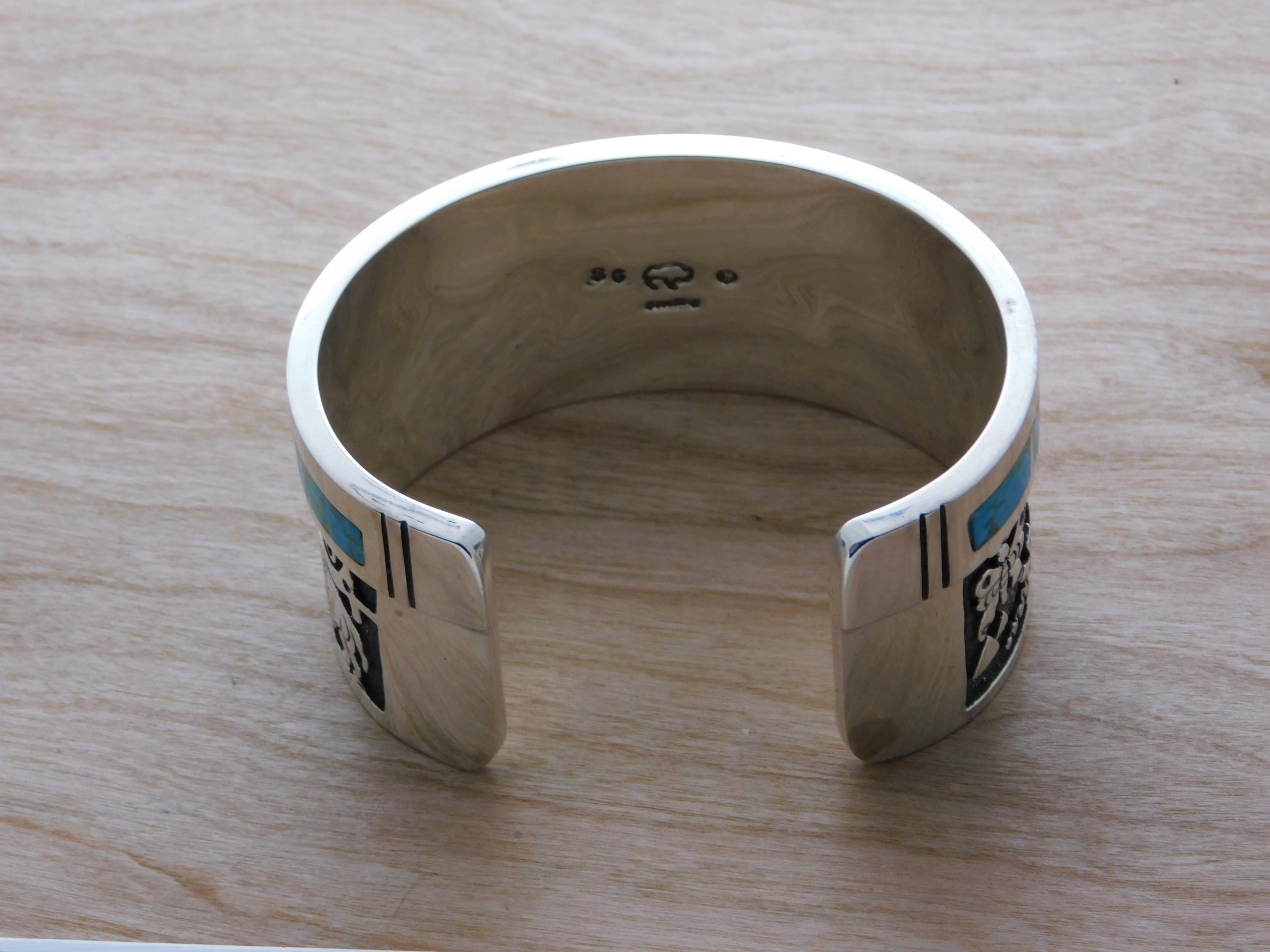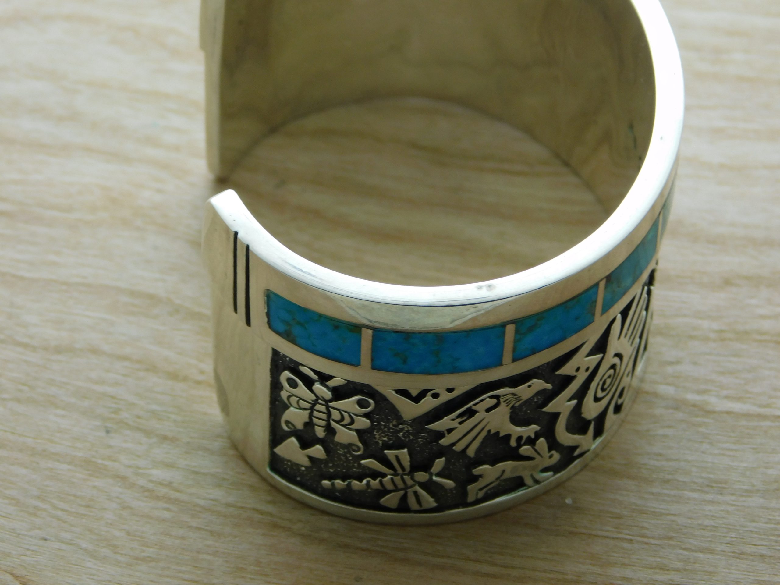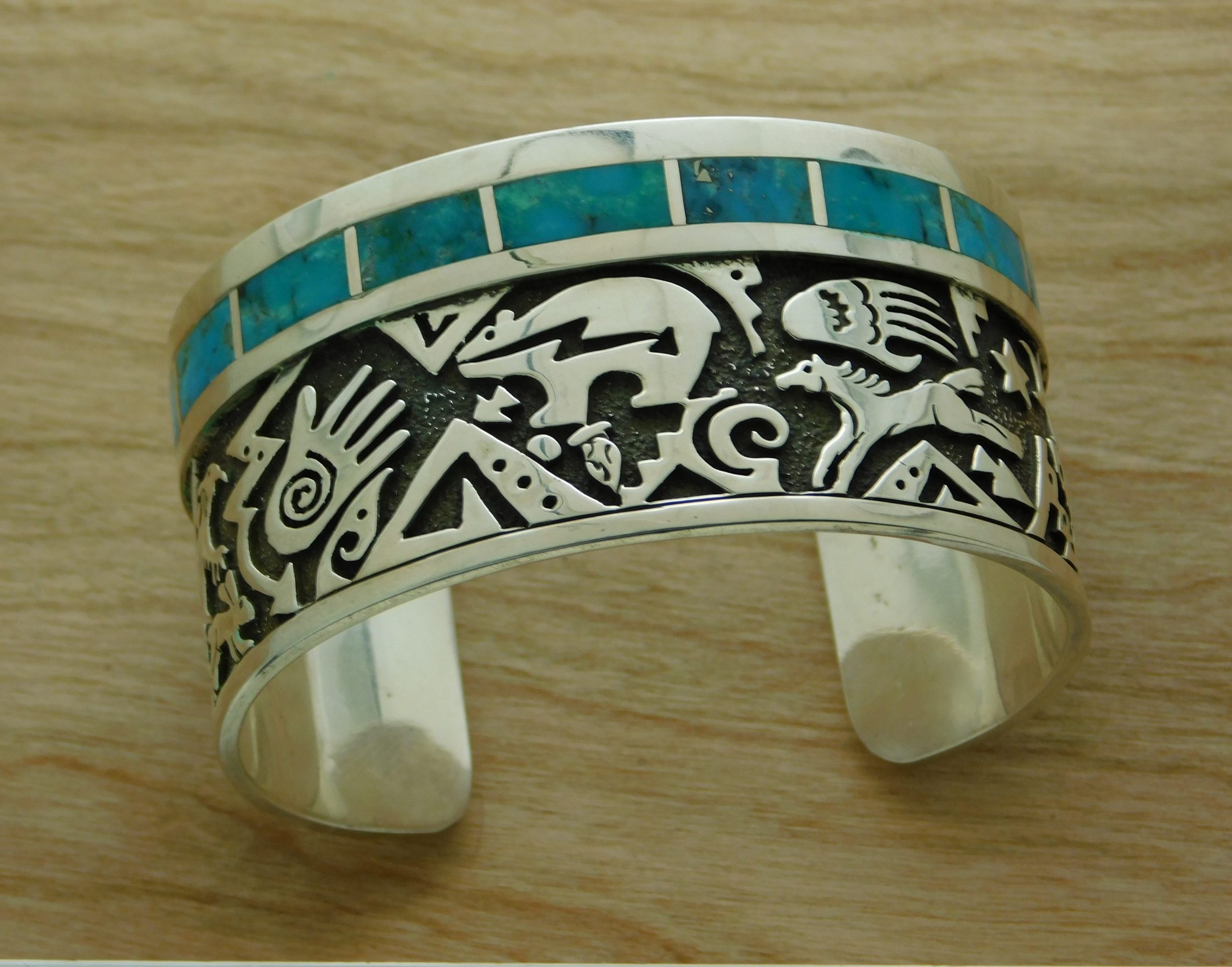 - Fabulous Sam Gray Navajo / Zuni Sterling Silver and Kingman Turquoise Petroglyph and Animal Cuff.