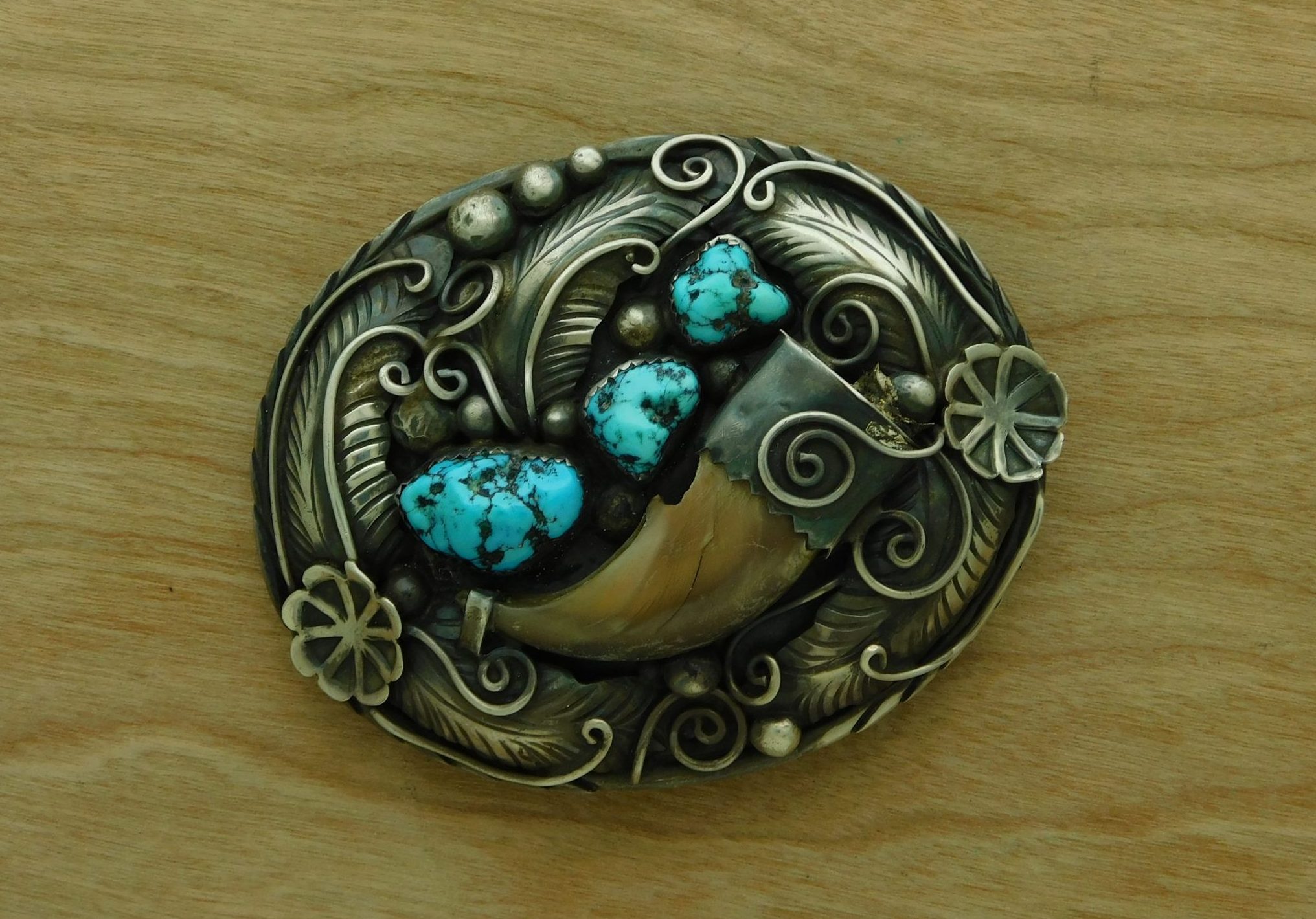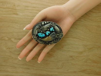 - Fabulous Sarah Chee Navajo Kingman Turquoise, Mediterranean Coral, and Bear Claw belt buckle!