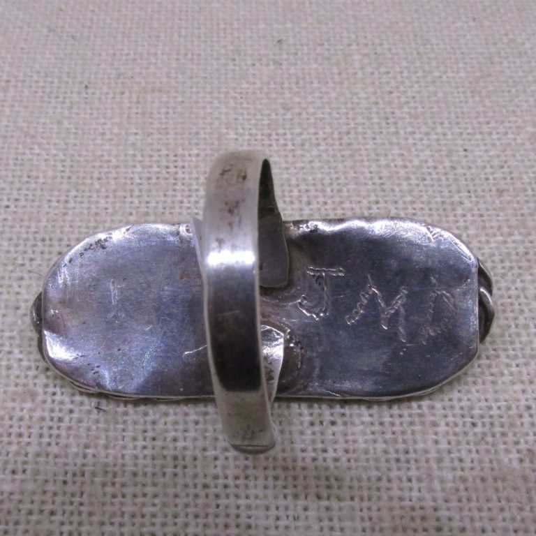 - Beautiful Vintage Turquoise and Coral Ring by unlisted silversmith.