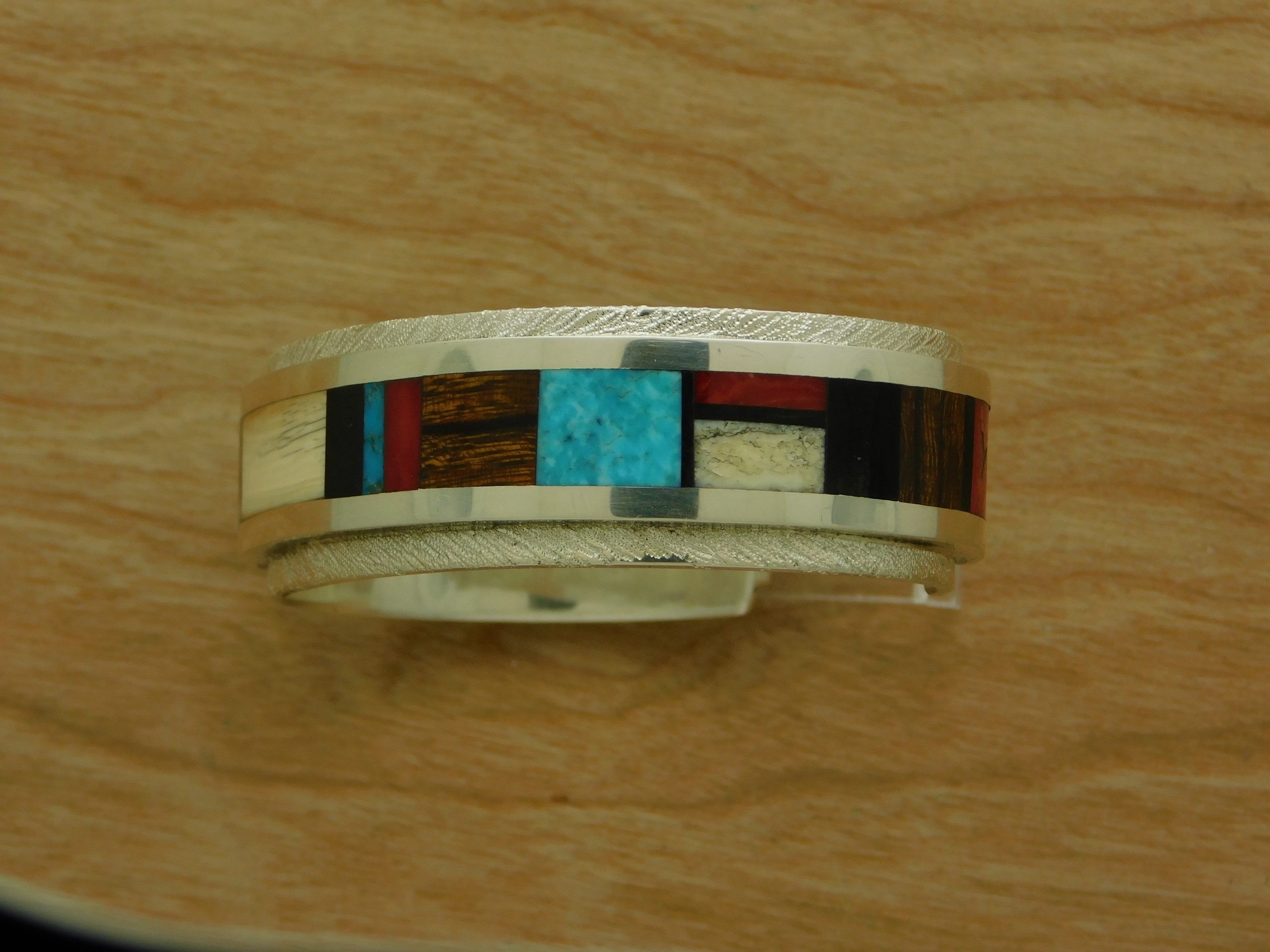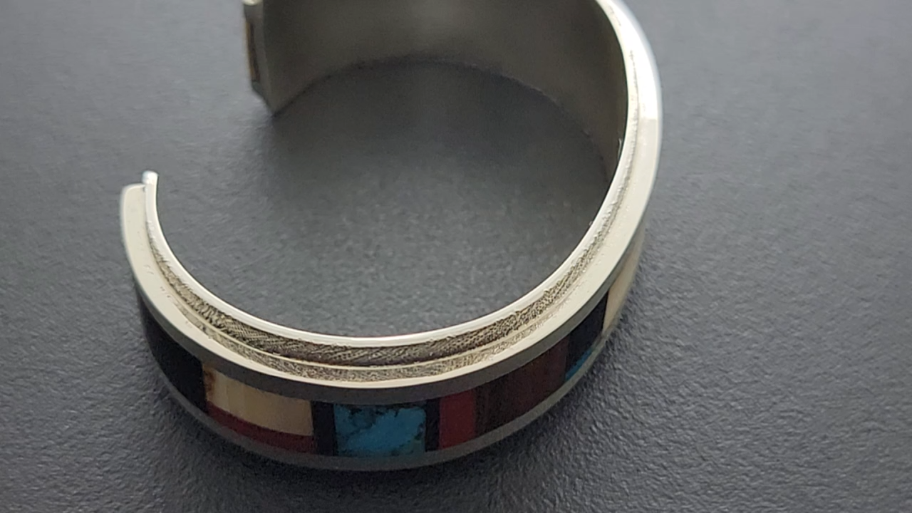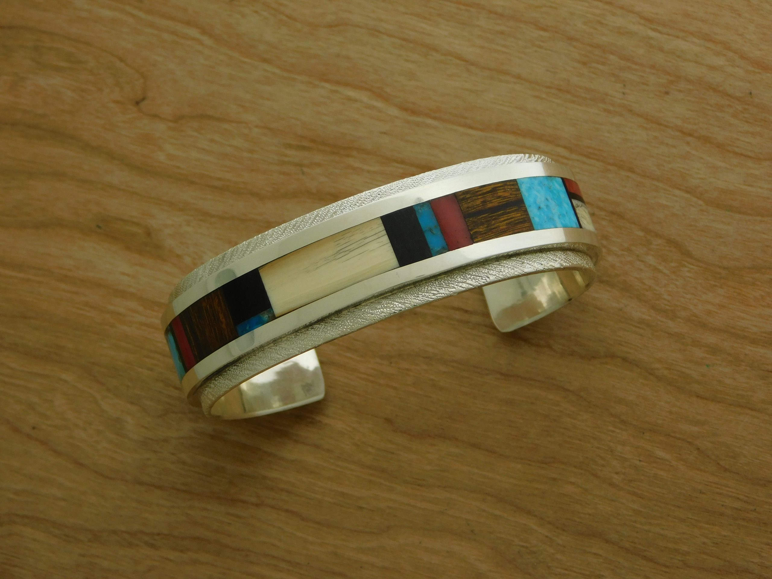 - Fabulous Tim Yazzie Navajo / San Felipe Pueblo multi-stone textured sterling silver Cuff Bracelet.