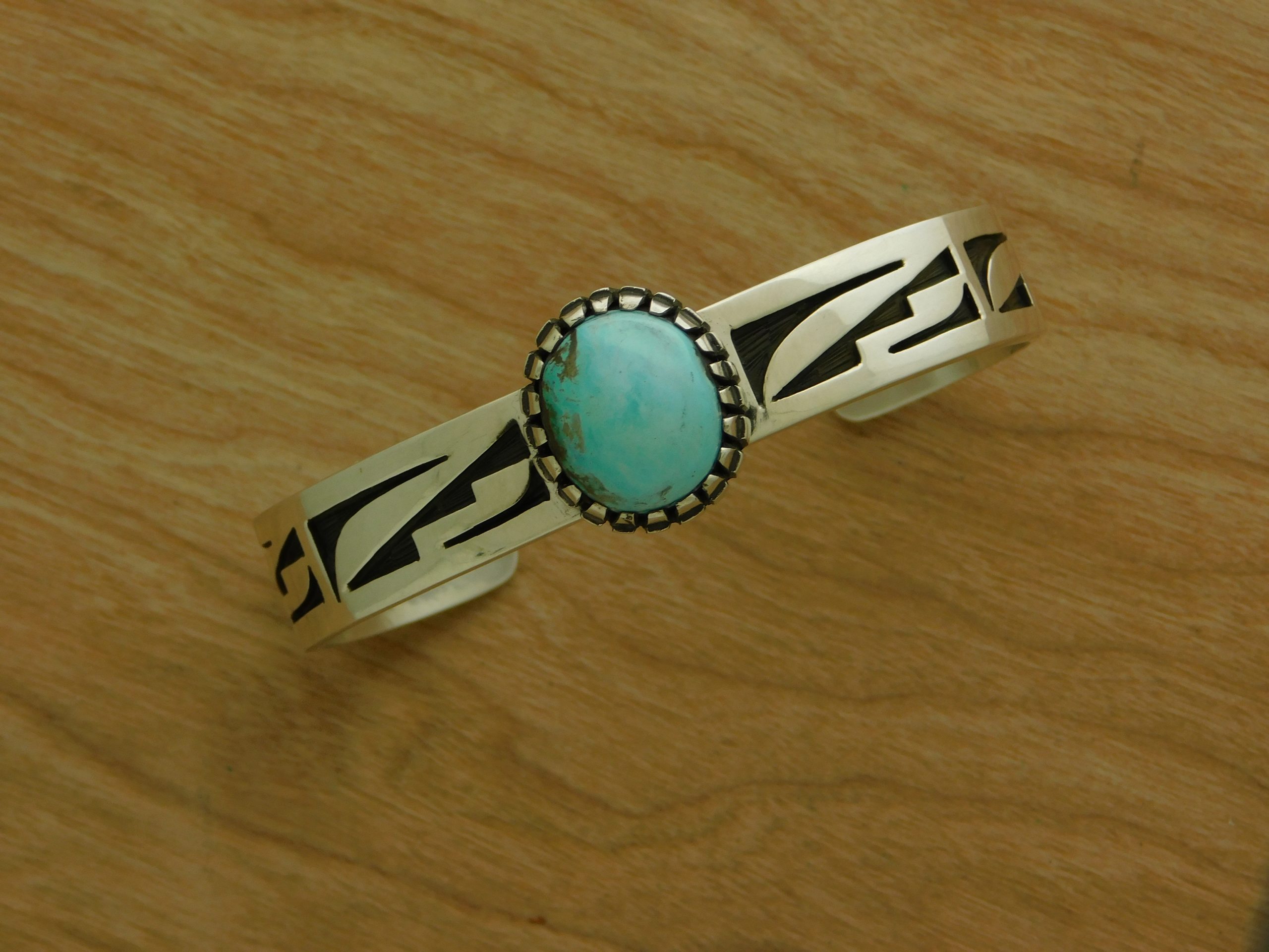 - Fabulous Tim Yazzie Navajo / San Felipe Pueblo Pilot Mountain Turquoise Cuff with Hand-cut Bezel!Β