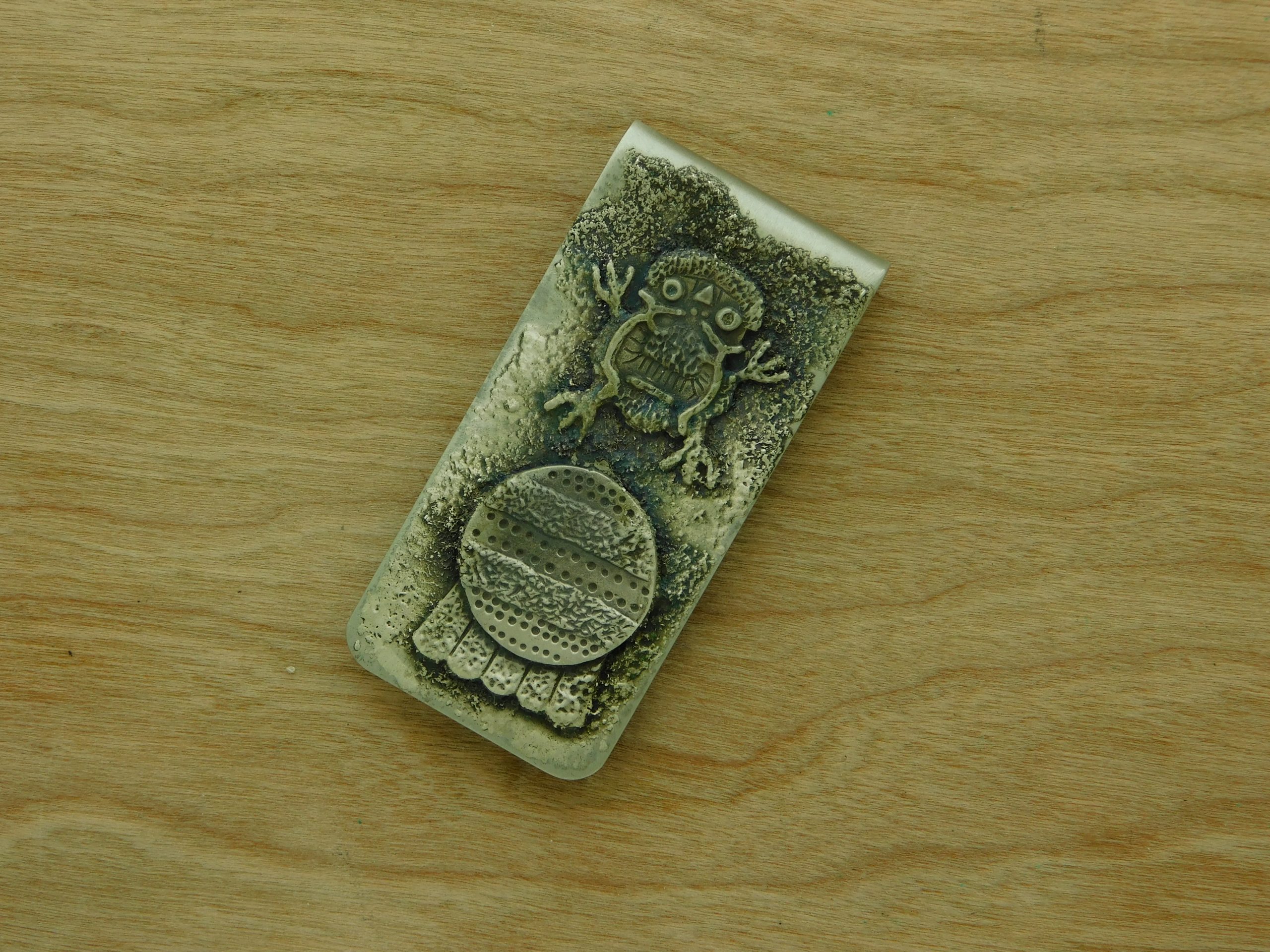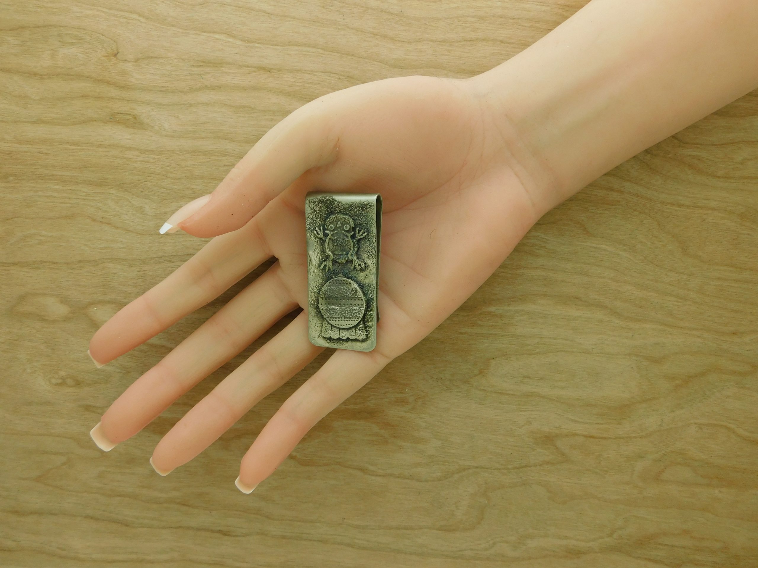 - This Sterling embellished nickel clip features a cast Petroglyph Figure