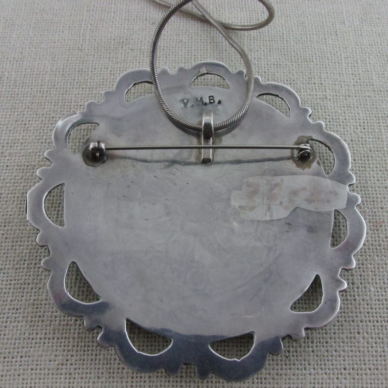 - V.M.B. is also the initials for Navajo Cluster work Silversmith Vernon M. Begay, but the work more closely resembles that of Valentino and Matilda Banteah, Zuni Silversmiths.